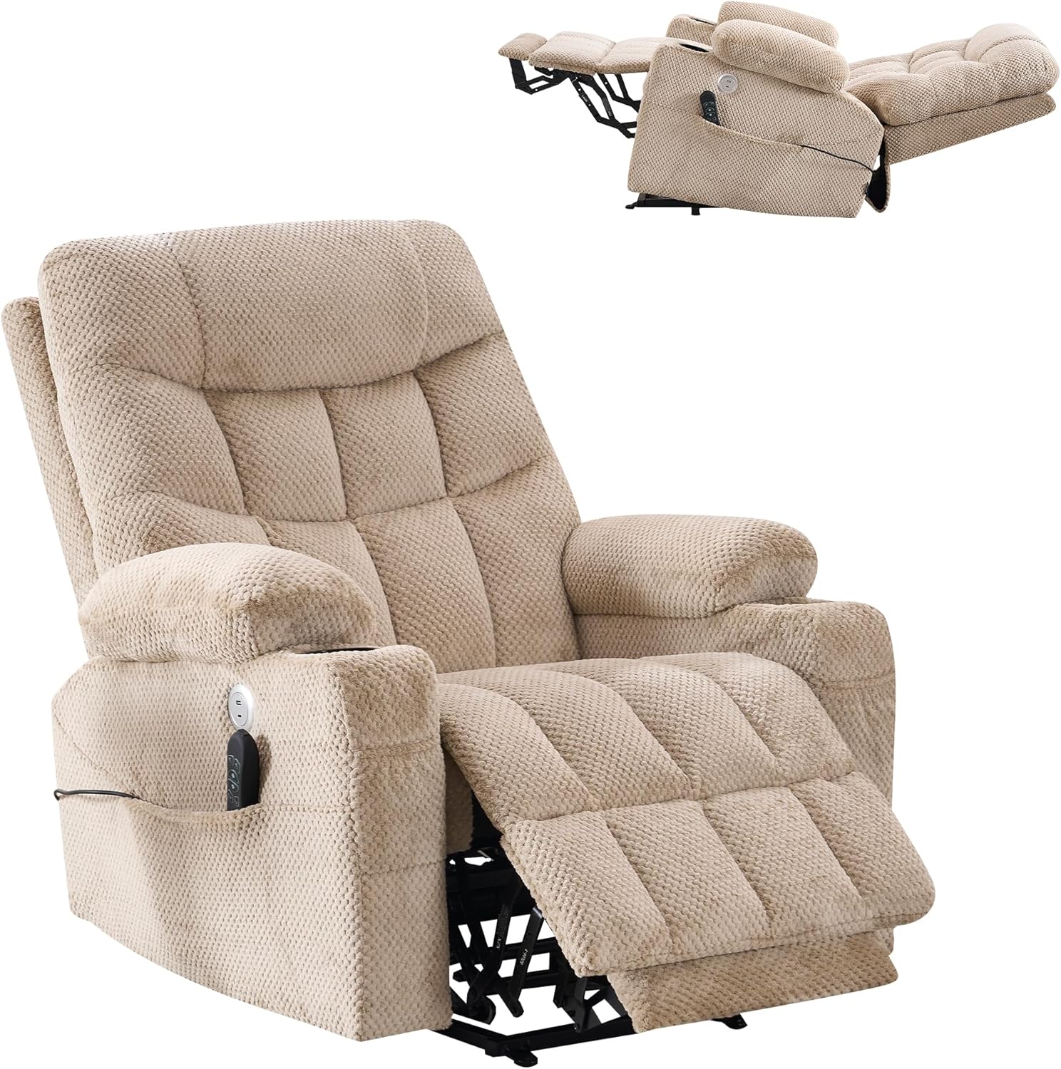 125" Chenille Modular Sectional Sofa Bed Hidden Storage, Convertible L U Shaped Sleeper Couch, 8 Seat Modern Modular Sectional Sofa with Removable Covers & Ottoman Chaise, for Living Room, Beige