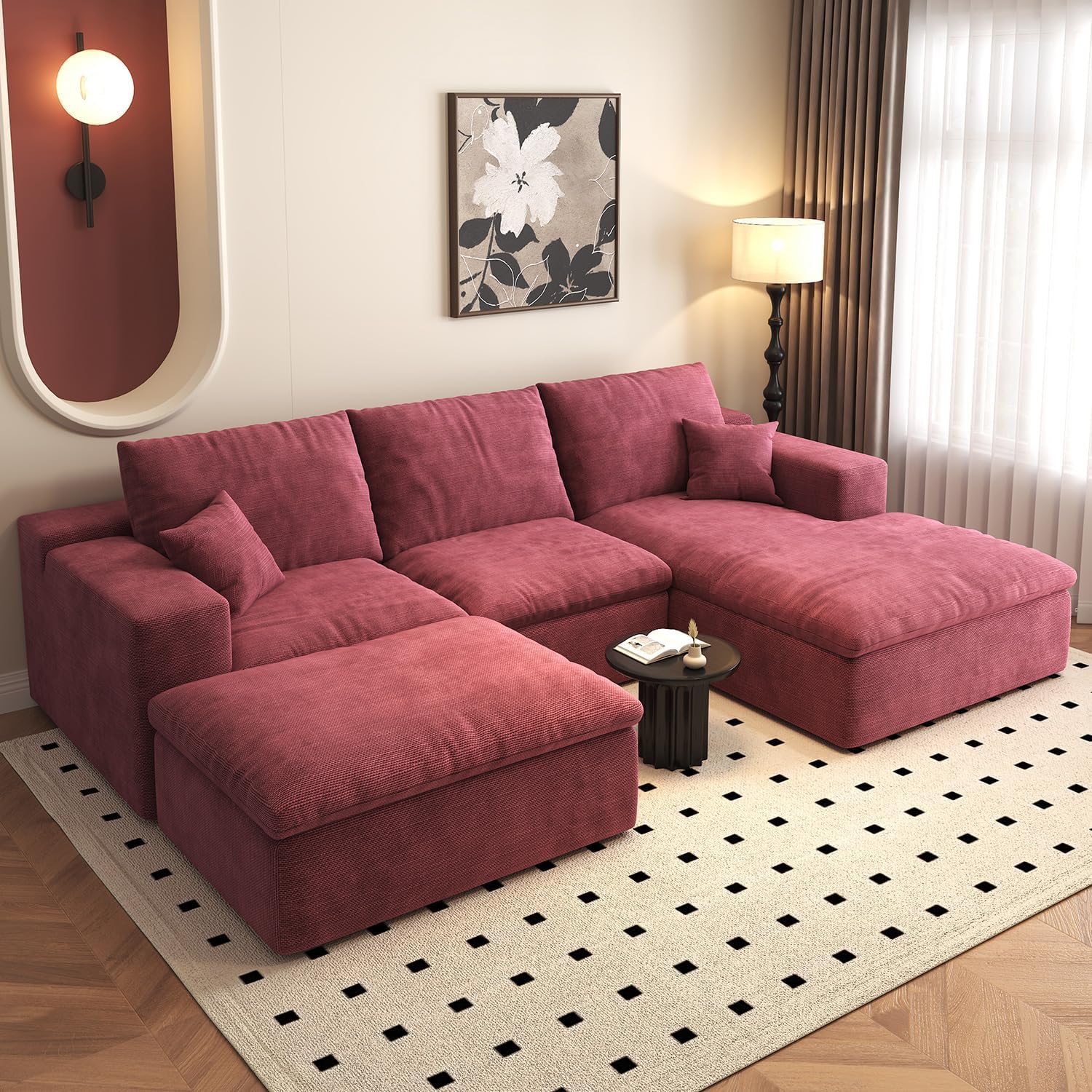 Cloud Couches for Living Room L Shaped Sectional Couch with Ottoman Deep Plush 4 Seats Sofa Modern Sofa for Apartment | Cloud, L shaped, Deep Seat, Movable Ottoman, 4 Seat, Sectional