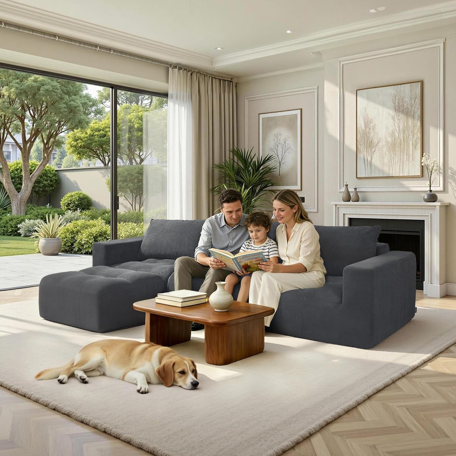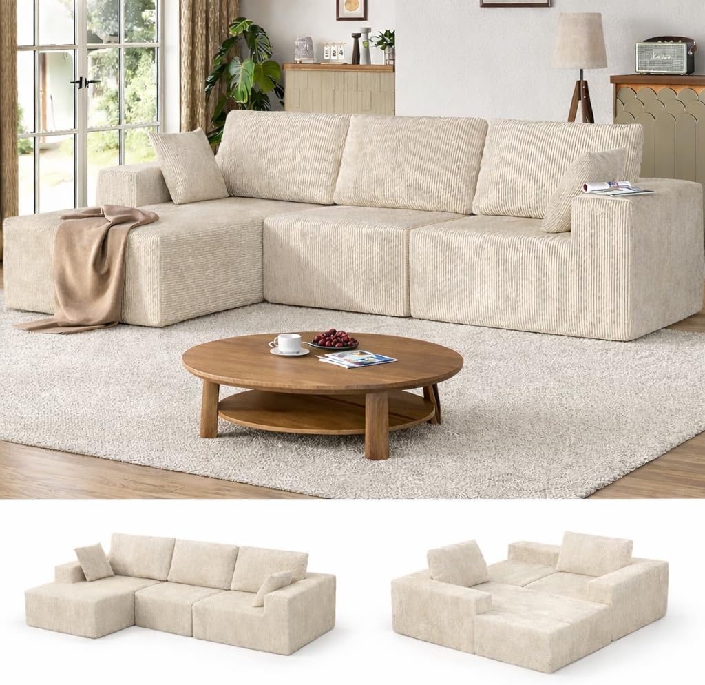 107" L-Shaped Boneless Couch, Cloud Modular Sectional Sofa with Chaise, Upholstered - No Assembly, Deep Seat, Soft Cushions & Backrest, for Living Room, Beige