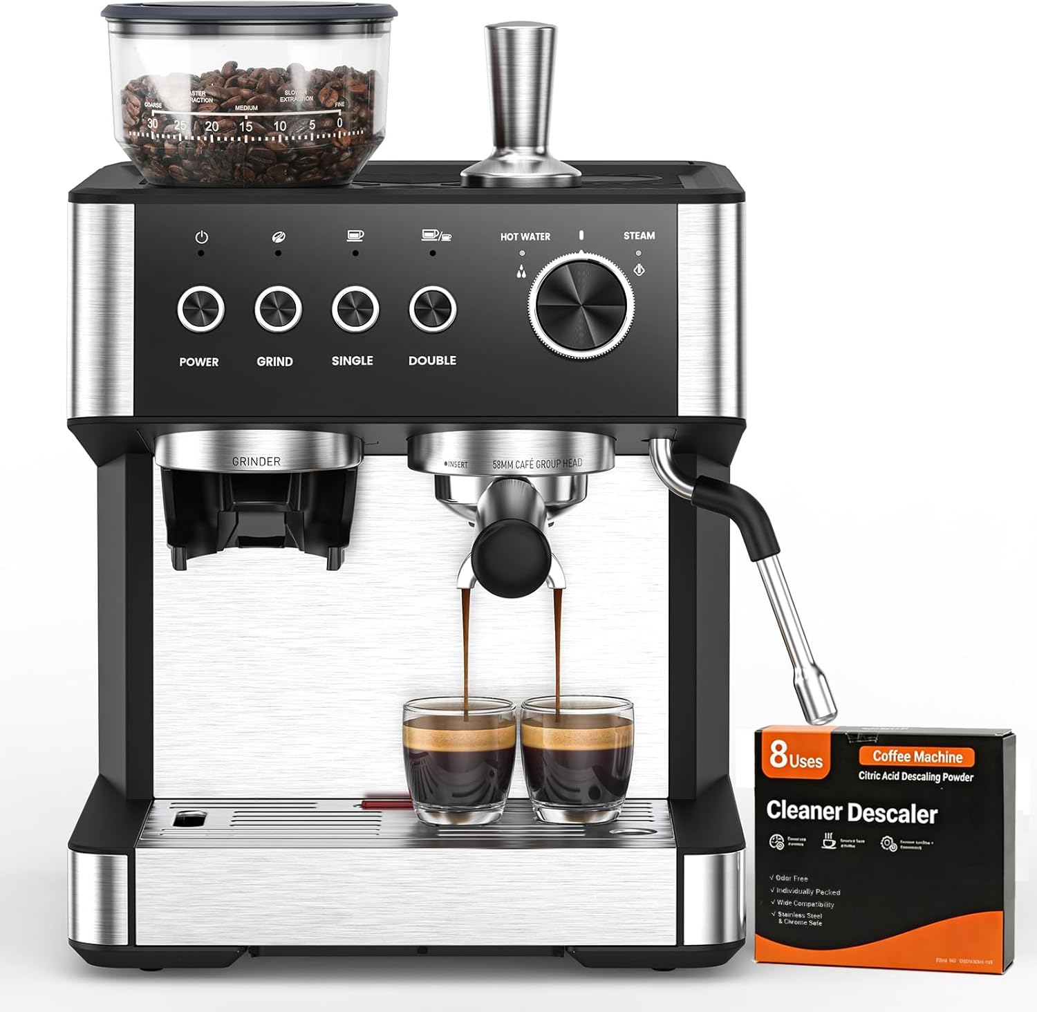 2026 Upgrade) Espresso Machine with Grinder, 15 Bar Expresso Coffee Machines, Professional Coffee Maker for Latte&Cappuccino with Milk Frother, Expresso Machines for Home Descaling Kit Included Black