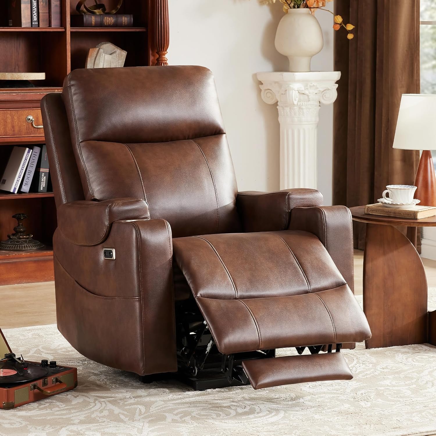 Triple Motor Power Lift Recliner Chair with Adjustable Lumbar Support, Lay Flat Recliner for Elderly, Breathable Brown Leather Recliner, Lift Chair Massage & Heating, USB Ports, Cup Holders