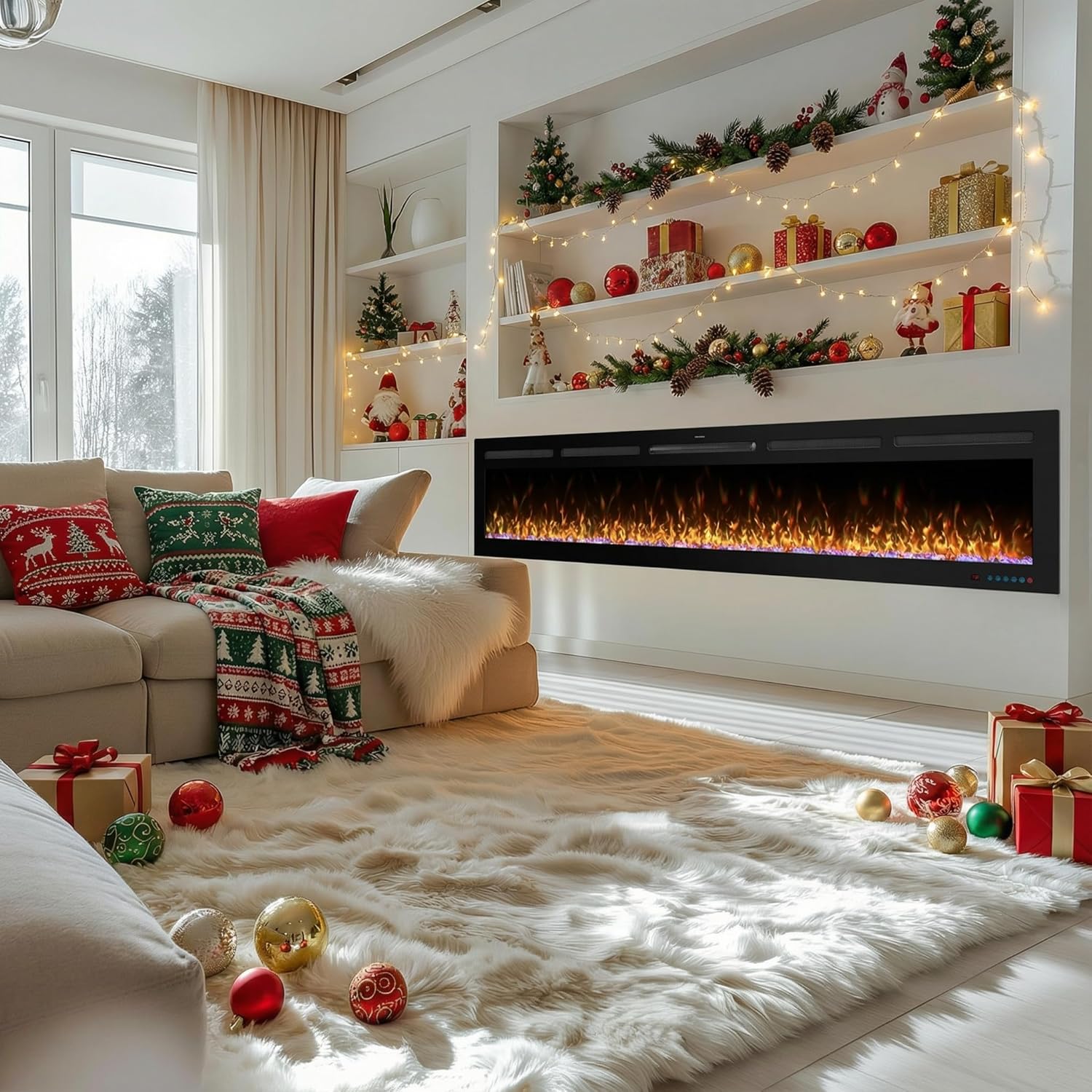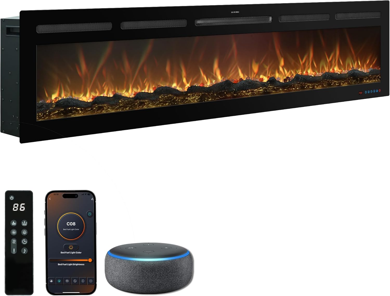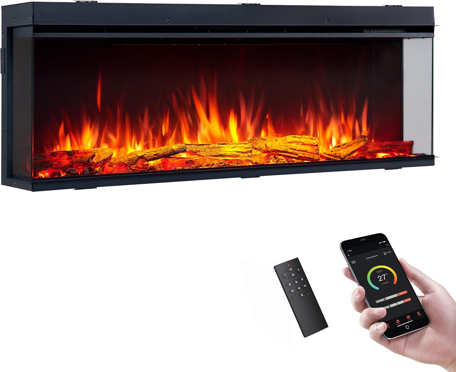 Smart Electric Fireplace-The Sideline 50" Wide-in Wall Recessed - 30 Realistic Ember Color/Flame Options - 1,500W Heater w/Thermostat - Log & Crystal Hearth Options - Alexa/WiFi Enabled