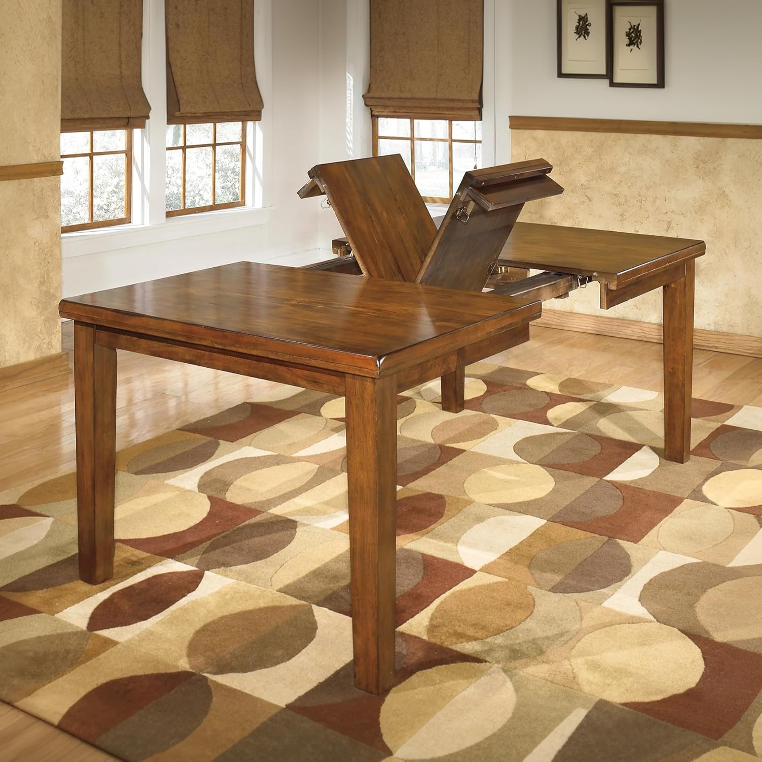 Ralene Rectangular Dining Room Extension Table, Seats 8, Self-storing Extension Leaf, Wood, 42" W x 78.13" D x 30.25" H, Medium Brown