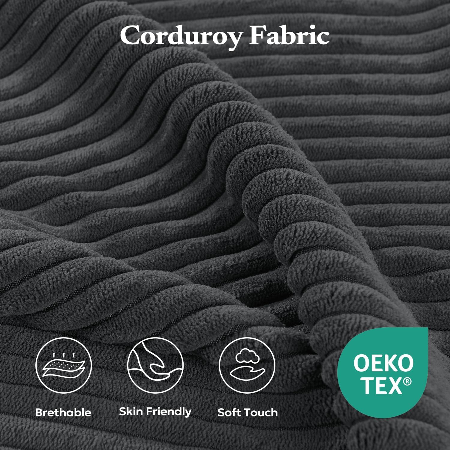 Corduroy Fabric: Indulge in the textured luxury of our premium corduroy upholstery, where exceptional softness meets practical elegance. The distinctive ridged weave creates a visually captivating surface that's remarkably durable while maintaining its refined appearance season after season. Certified by OEKO-TEX Standard 100 for safety and breathability, this versatile fabric combines inviting tactile warmth with timeless style for your living space