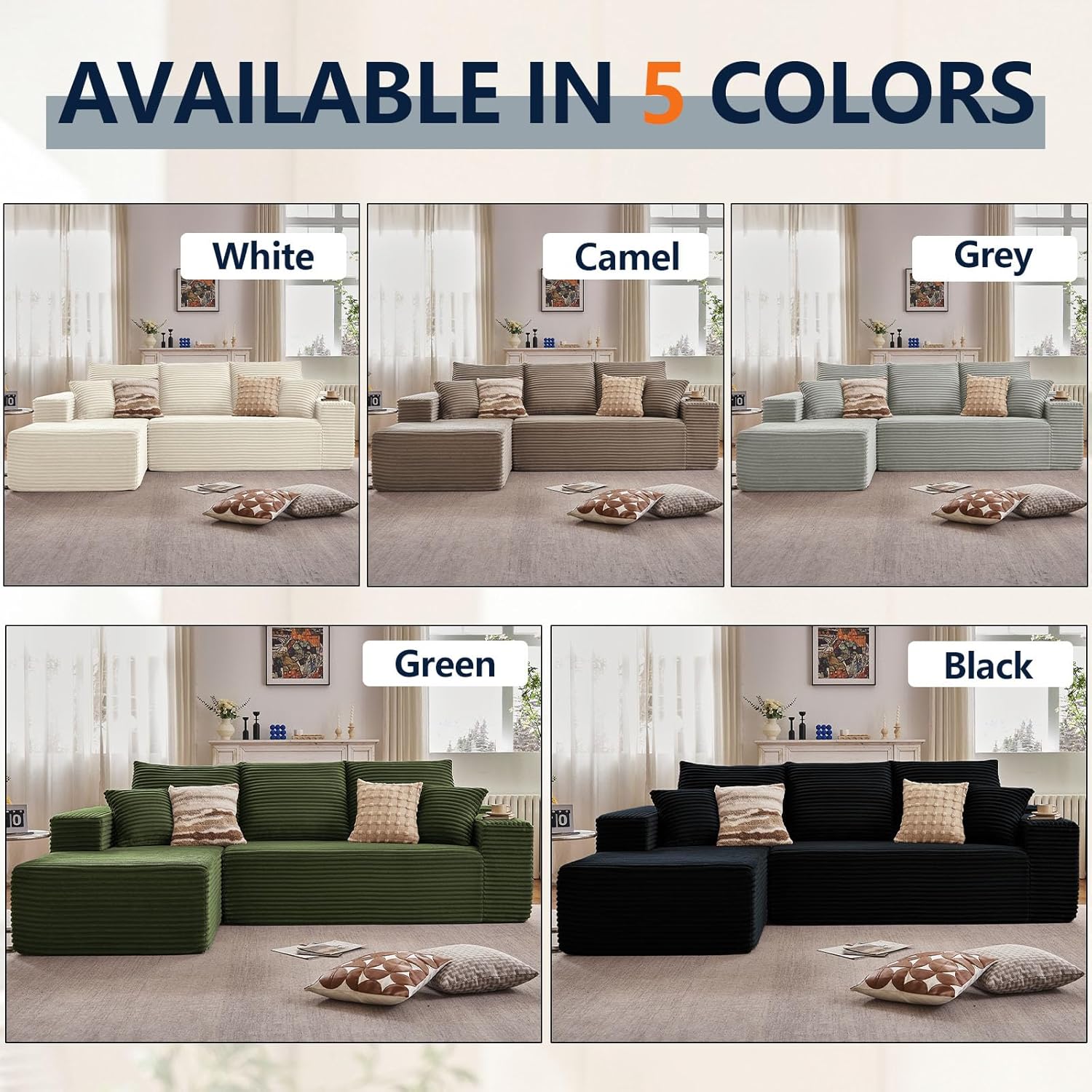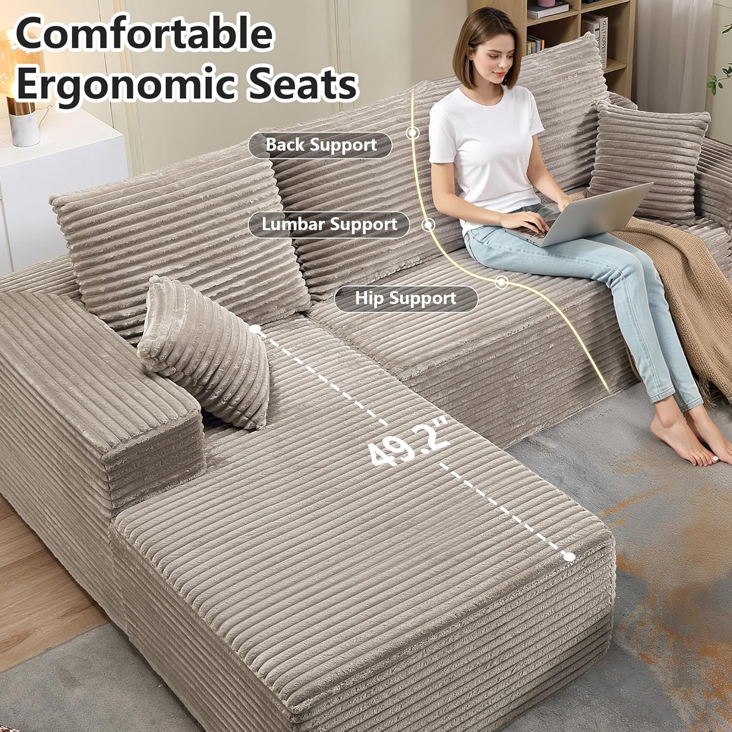 Plush Corduroy Fabric: Upholstered in an ultra-soft, luxurious corduroy fabric, this sofa provides a silky, soothing touch that delivers unmatched comfort and warmth year-round, elevating your lounging experience and home aesthetics.