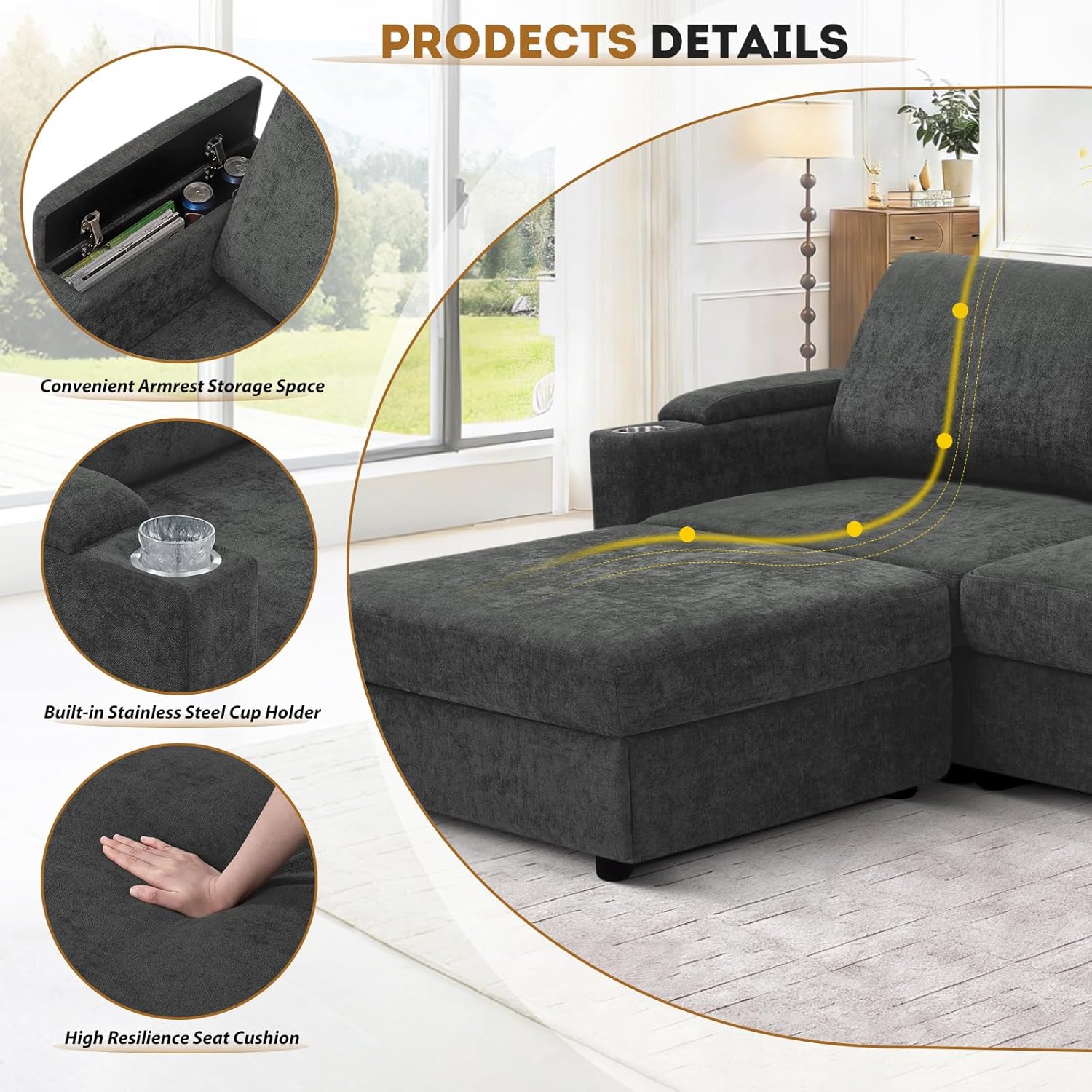 Comfortable Seat Cushions:The chenille couch with thick cushions are very cozy and soft. The seat cushions with high resilience foam can offers both comfort and durable. After a long day of work, you can lie on it to rest and relax your body