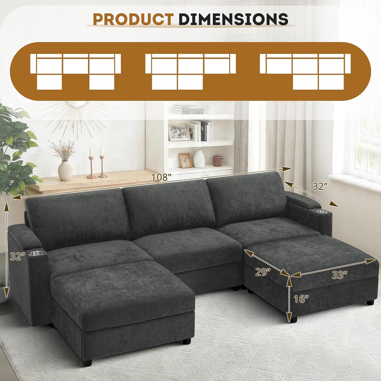 Easy to Assemble:This sectional sofa is very easy to assemble. After following the clear instructions for assembly, you can start to enjoy using it