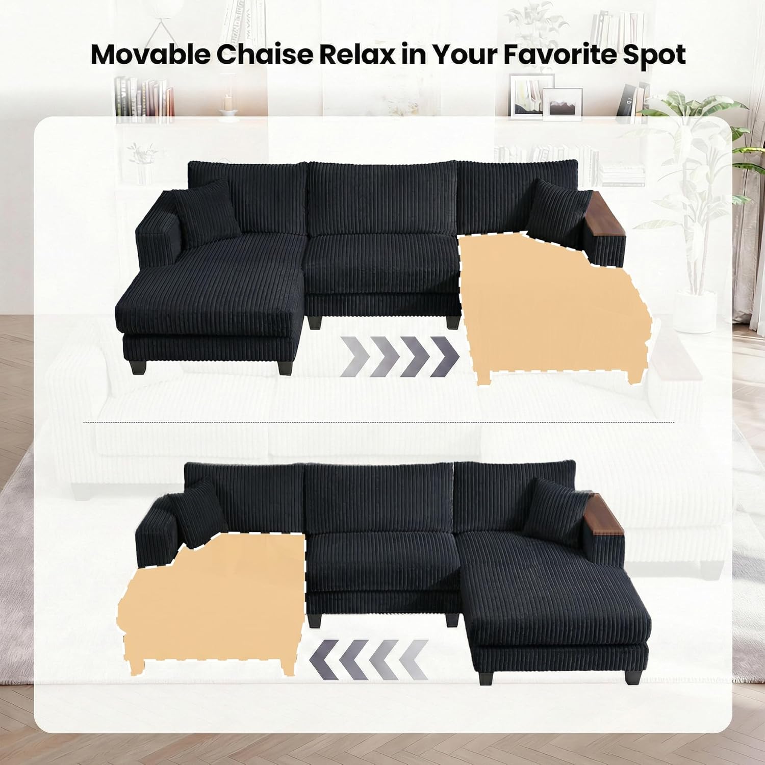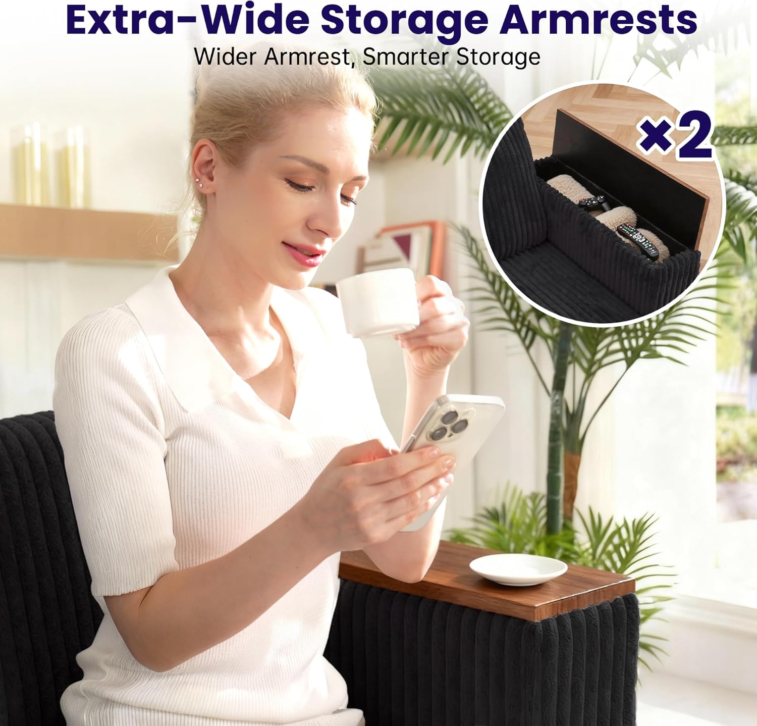 Armrest Storage & Reversible Chaise Designed for functionality, the wide armrest features built-in storage space to keep blankets, remotes, or essentials neatly tucked away. The reversible chaise allows flexible placement on either side, adapting easily to different room layouts and living needs.