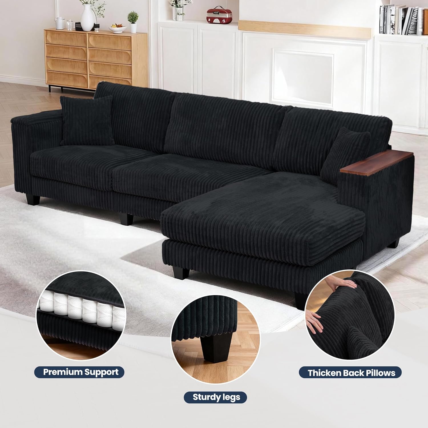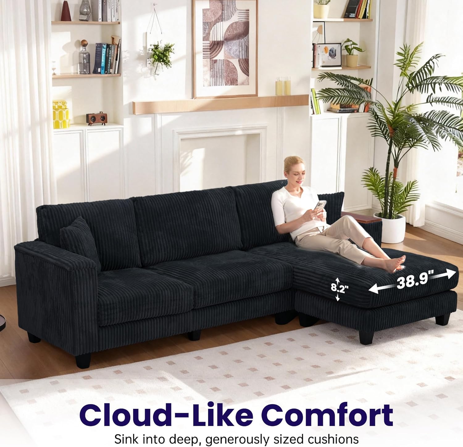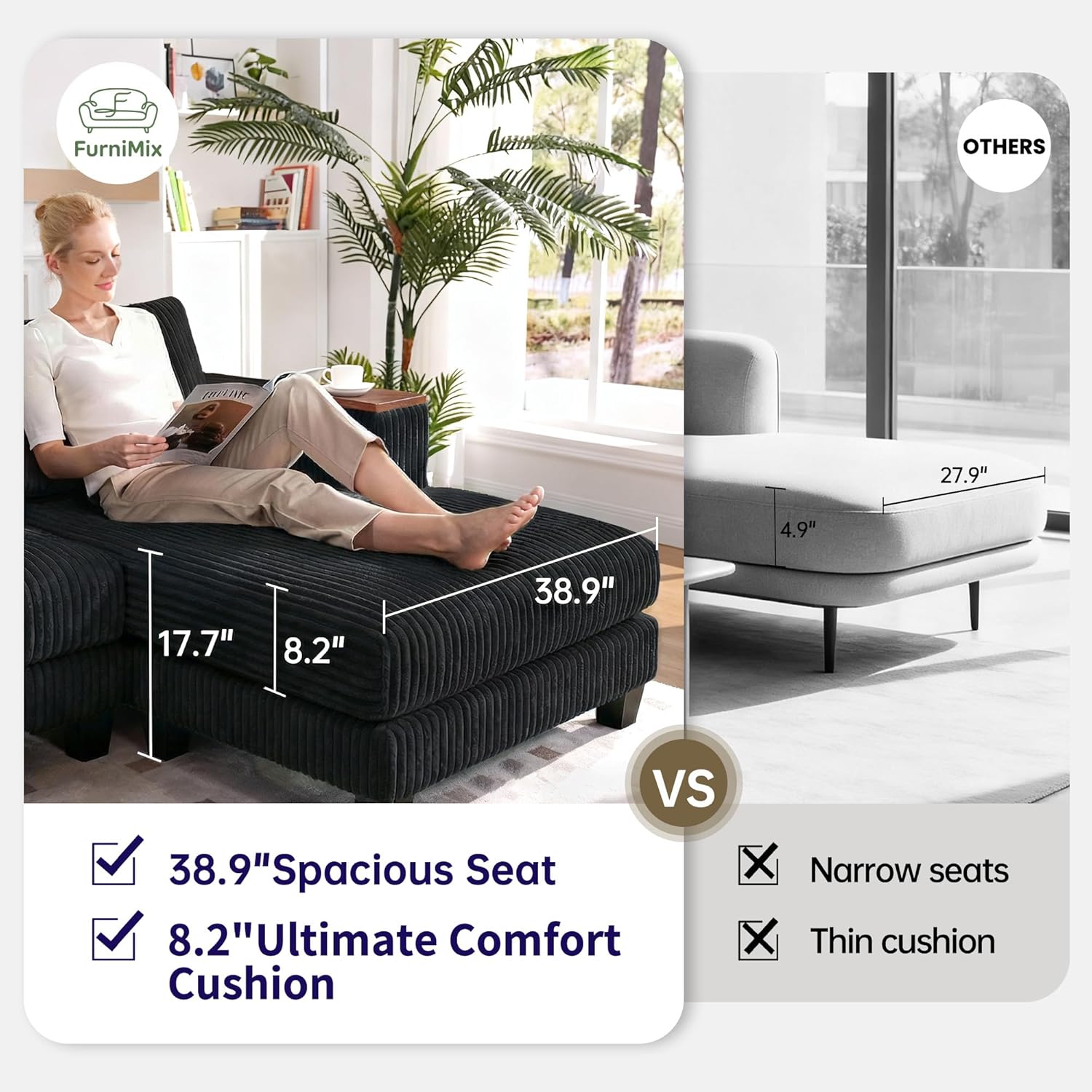 Supportive & Comfortable Seating Filled with resilient foam cushions, this sofa offers balanced comfort and dependable seat support. Whether sitting upright, lounging, or stretching out on the chaise, the cushions maintain their shape while delivering a soft yet supportive feel.
