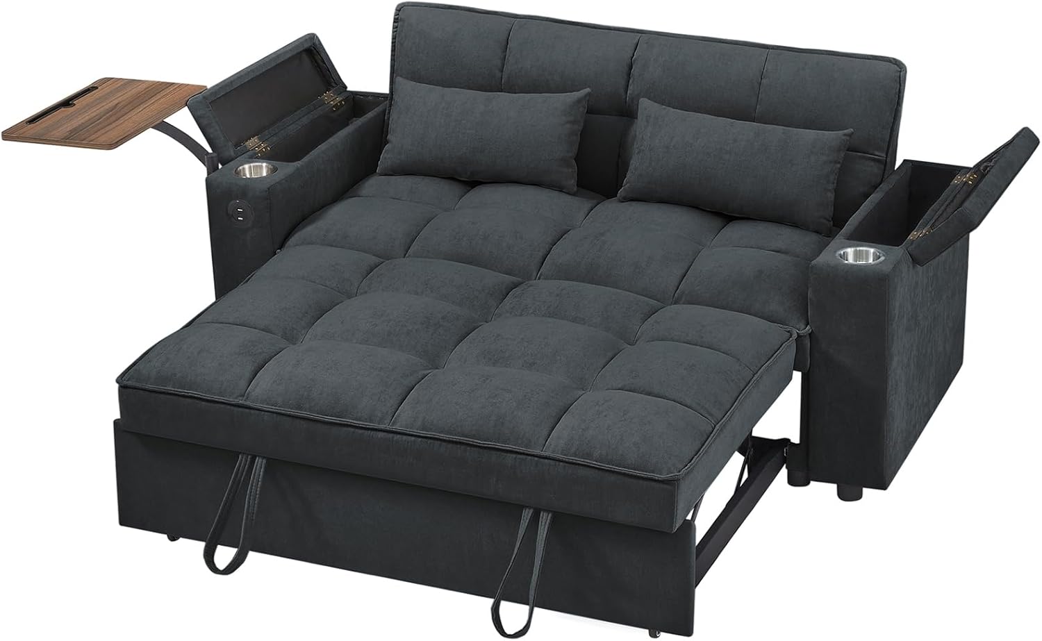 3 in 1 Functional Armrest The innovative sofa sleeper features two built-in charging ports (2 USB-A, 1 Type-C), allowing you to conveniently charge your electronic devices.The cup holders, enjoy leisure life at your fingertips. Hidden storage space under armrest, perfect for remote controls or books