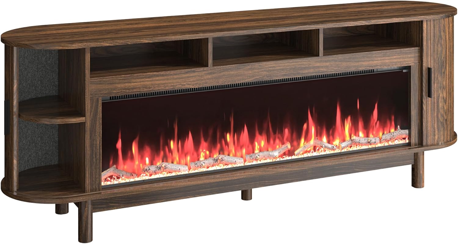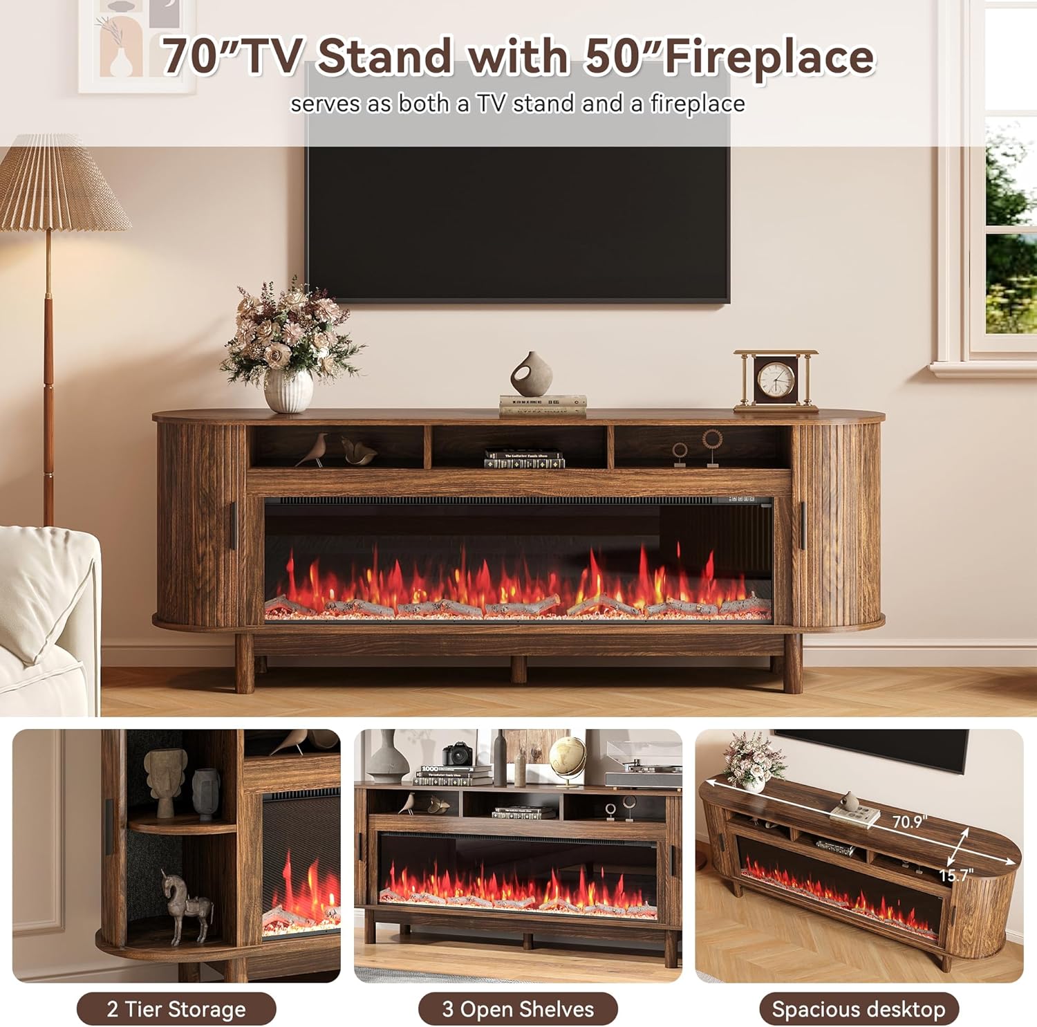 Large TV Stand with 50" Fireplace : Realistic Flames + Year-Round Versatility.long tv stands for living room with fireplace lets you enjoy 9 flame colors and 5 brightness levels for customizable ambiance. The life like dynamic flames pair with optional constant-temperature heatinguse with heat in winter, flame-only decor in summerto fit all-season home needs.