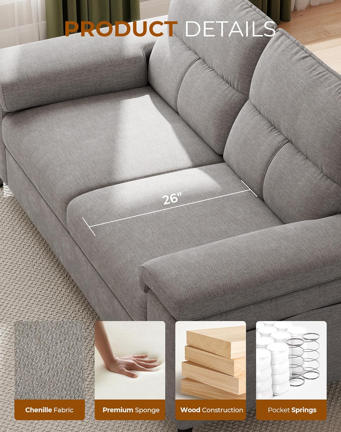 26.3" SEAT DEPTHOffers ample legroom, ensuring a spacious and comfortable seating experience for individuals of all sizes.