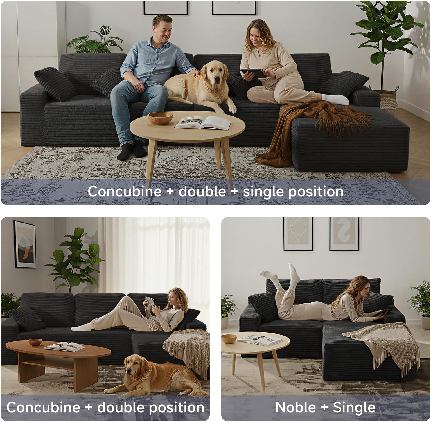 Pet-Friendly Durability & Easy Maintenance: Durable corduroy fabric boasts excellent scratch resistance, perfect for pet households. Pet hair stays on the surface and can be easily removed with a lint roller or quick wipe, keeping the modular sofa tidy with minimal effort. Sturdy fabric ensures long-term use in busy family environments.