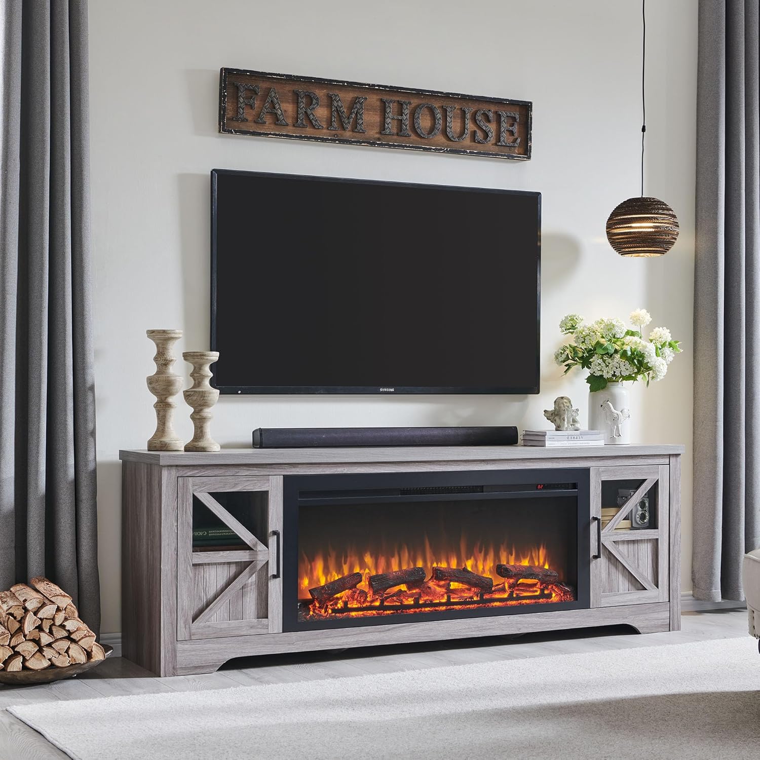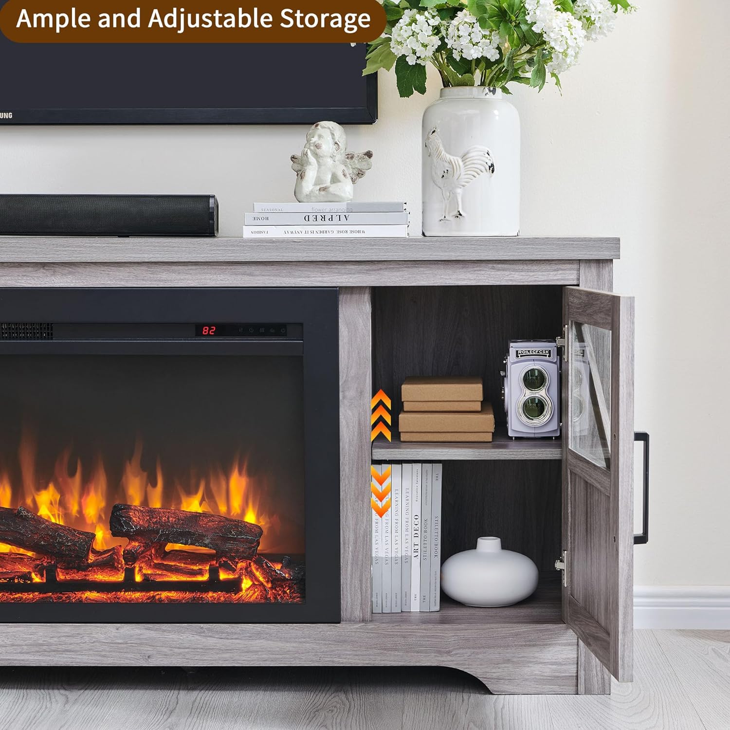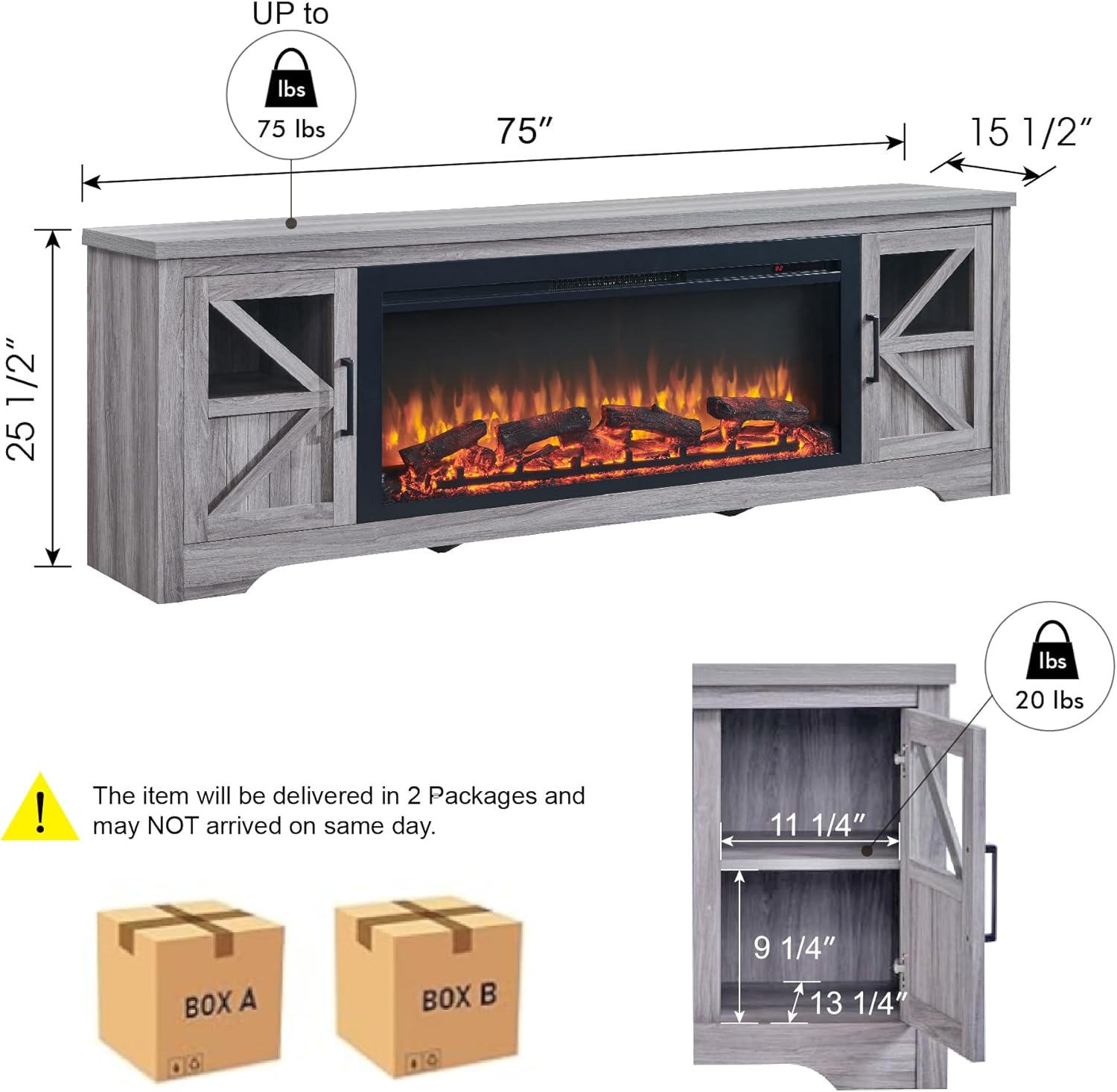Ample and Adjustable Storage: Store consoles, DVDs, and devices in two customizable cabinets with removable shelves. Perfect for 4385 TVs, this tv stands with fireplace keeps your space clutter-free. Durable construction holds heavy electronics, while the farmhouse aesthetic adds rustic flair. Ideal for small spacesmaximizes vertical storage without sacrificing style