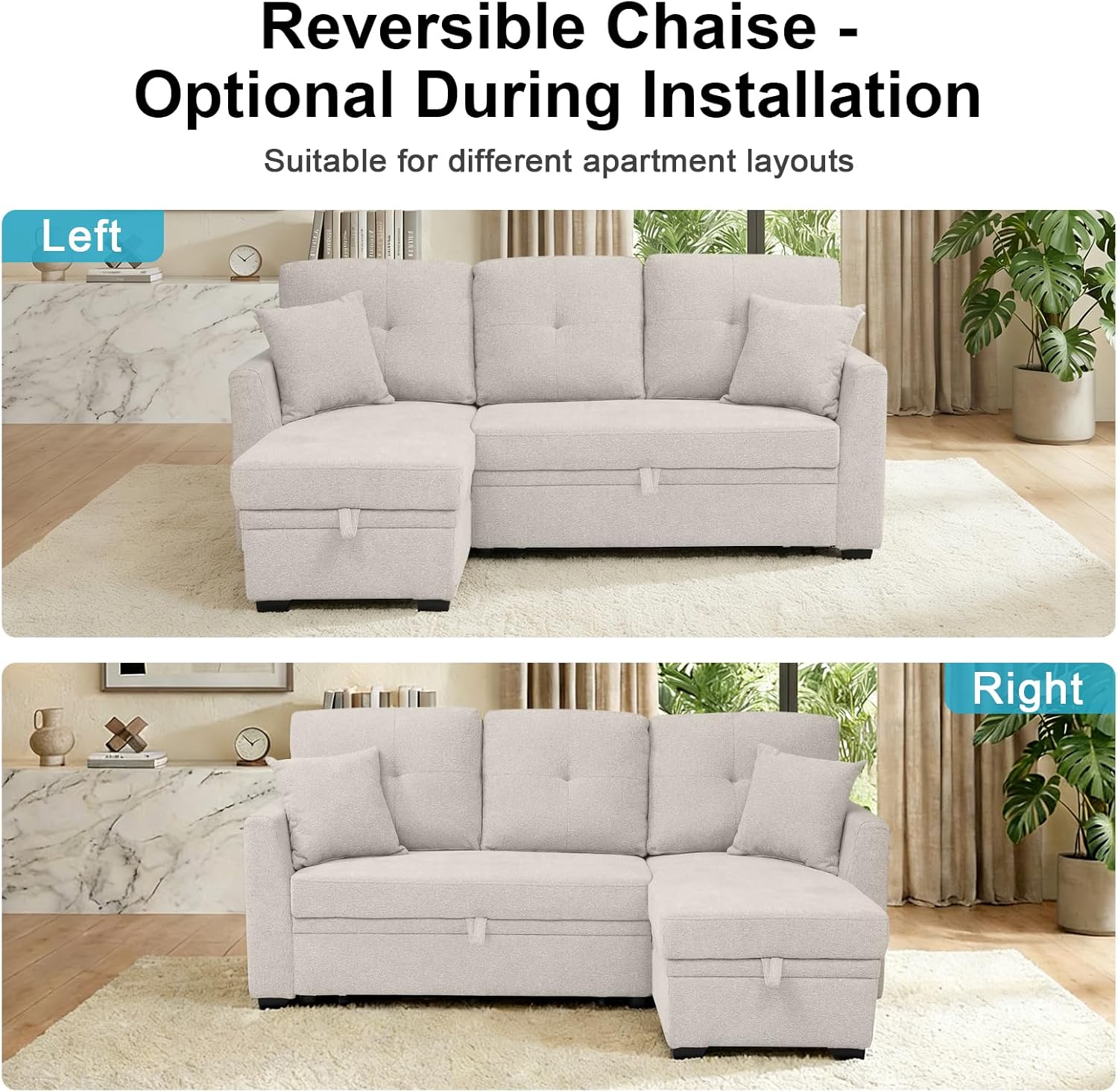 Ample Storage: This sleeper sofa includes a hidden compartment under the chaise for storing pillows, blankets, and essentials. Side pockets keep items organized, and an included throw pillow adds comfort