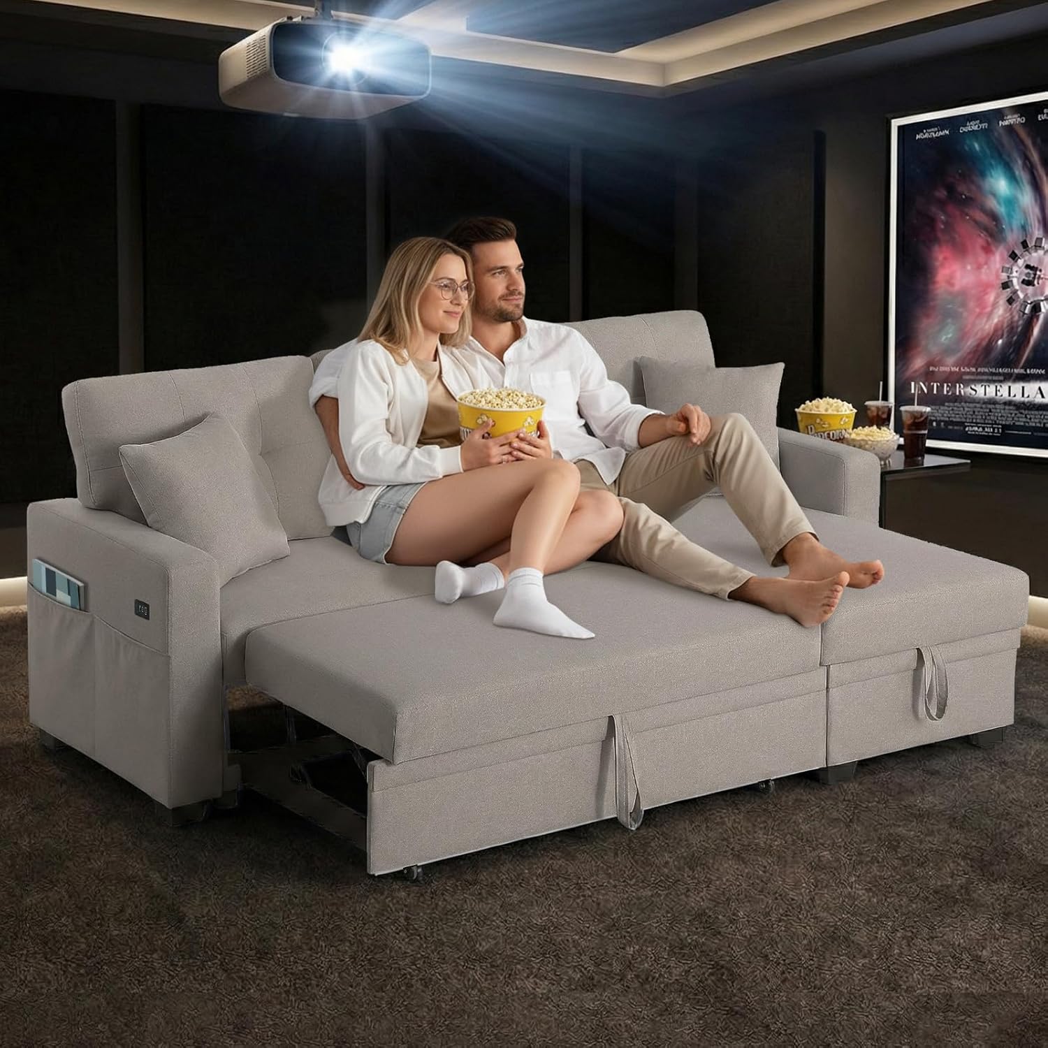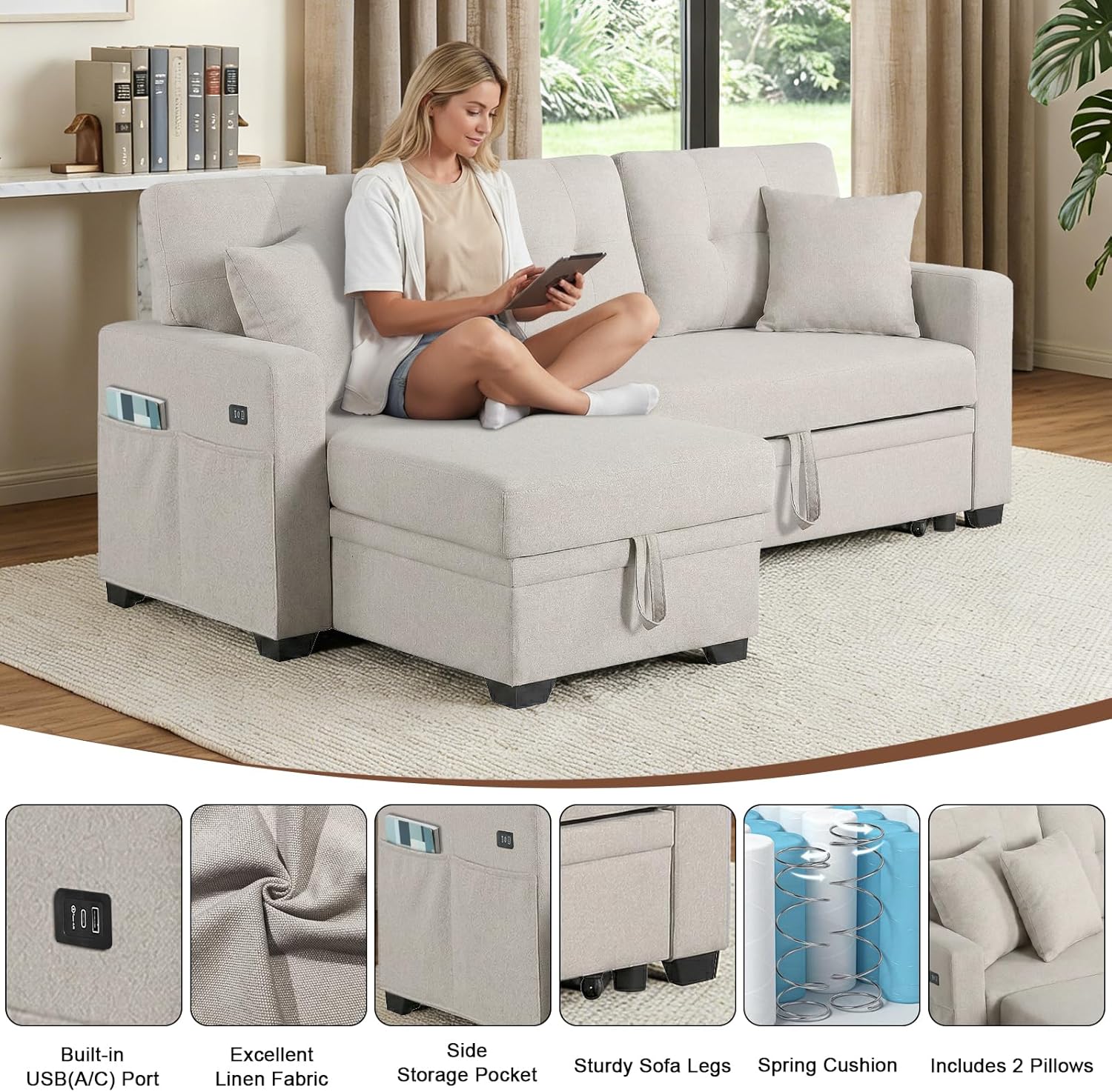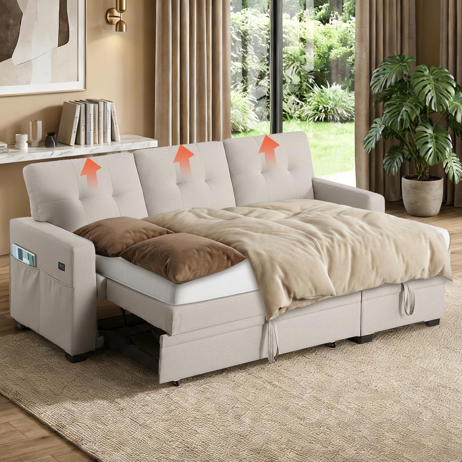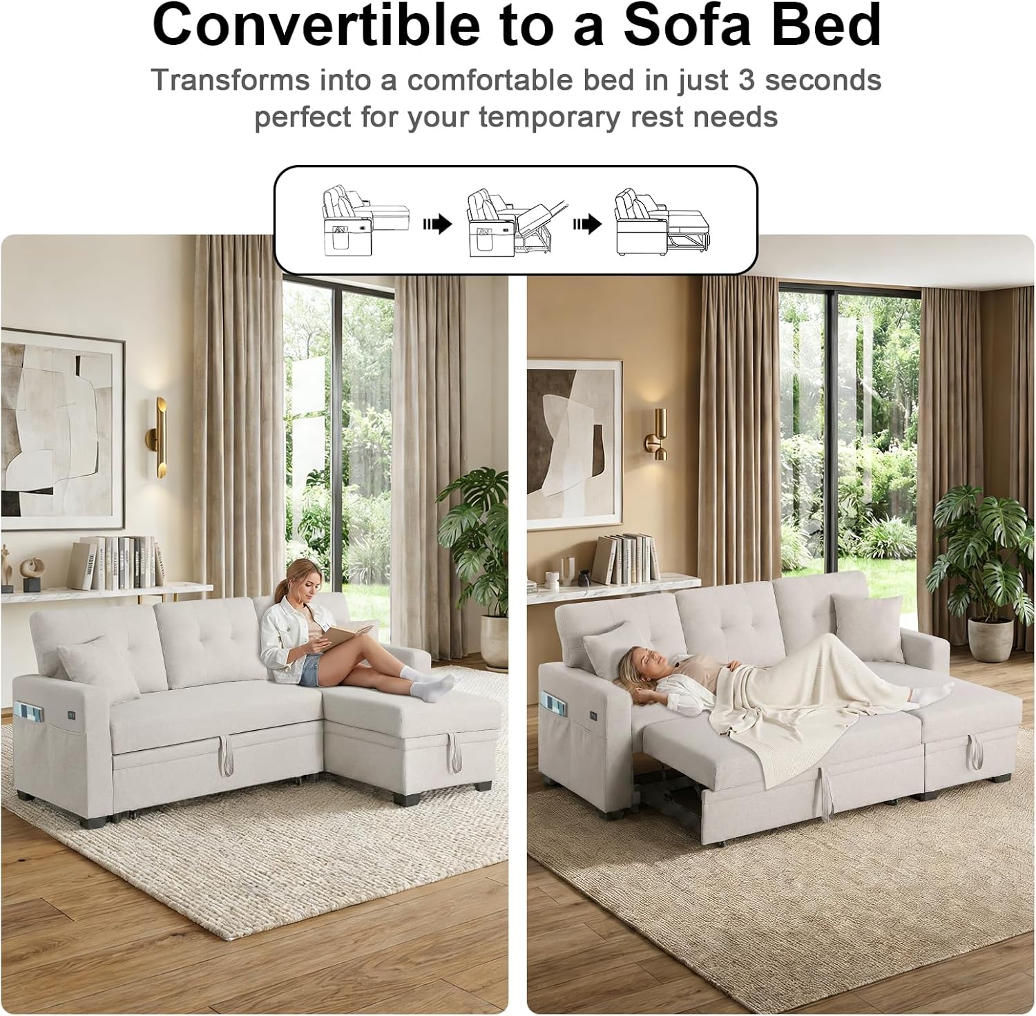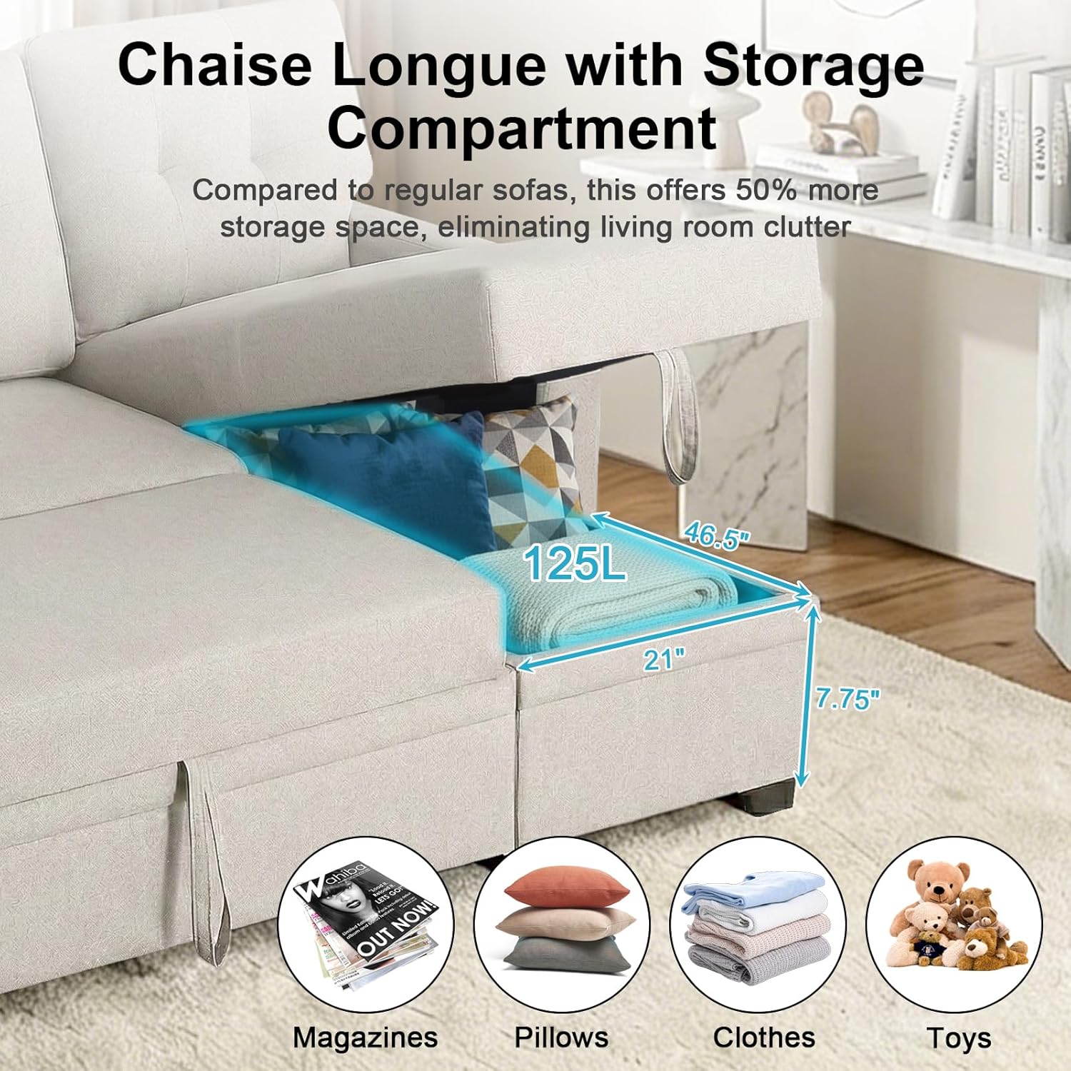 Premium Linen Fabric & Sturdy Build: Made with breathable linen fabric for a cool, skin-friendly feel, this sectional sofa sleeper features a metal-reinforced frame and high-density foam cushions for durable support and modern style
