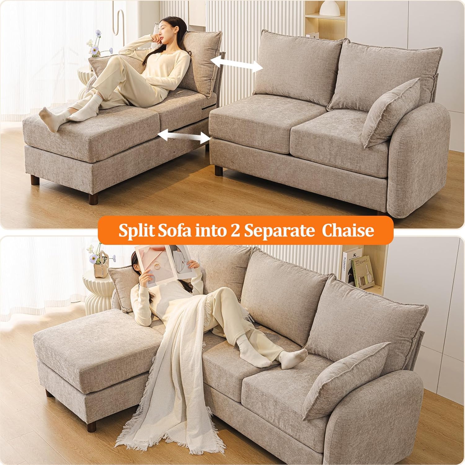 EASY ASSEMBLY: Enjoy a hassle-free setup! Simply connect the modules with the provided brackets and lock the backrest/armrest panels securely onto the seat frame. Your new sofa is ready in minutes. Have questions? Our dedicated customer support team is always ready to help.