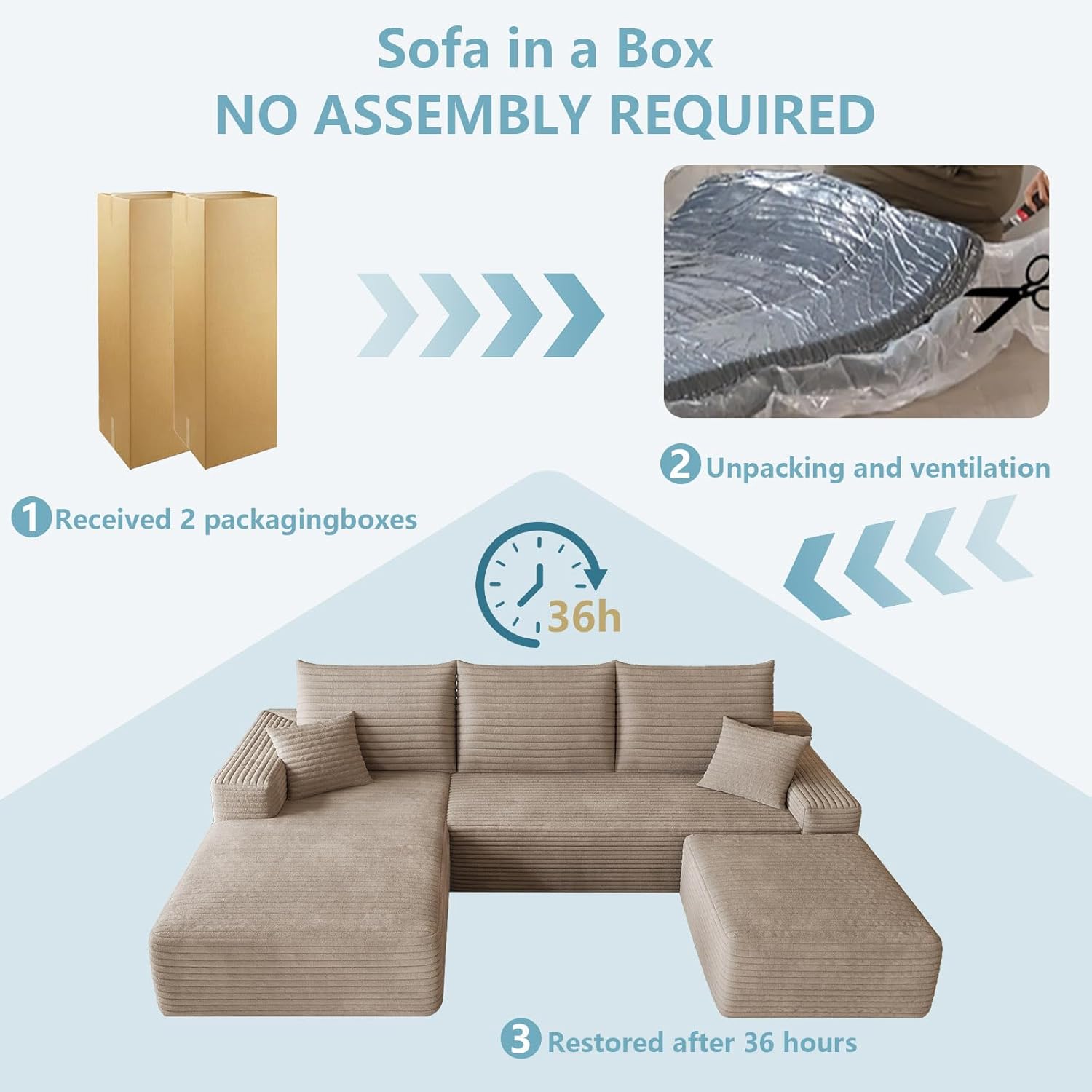 Compact & Space-Saving Design: Ideal for any room, from small apartments to spacious living areas, this modular sofa is designed to maximize space while providing plenty of seating. Its compact design allows for easy navigation through narrow hallways and doorways, while still offering ample room for relaxation. Note: The sectional is shipped in 2 separate packages, which may arrive at different times.