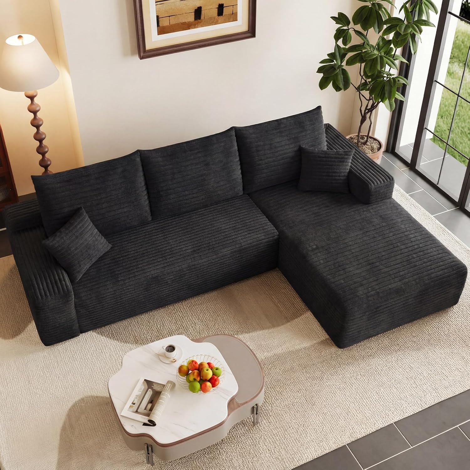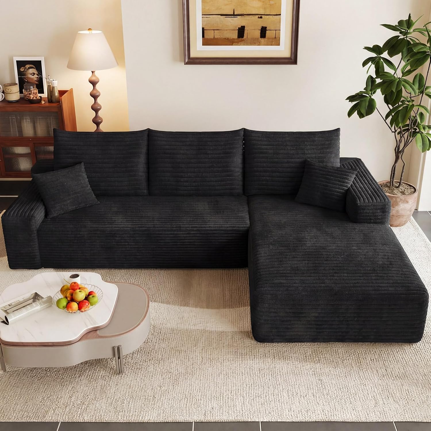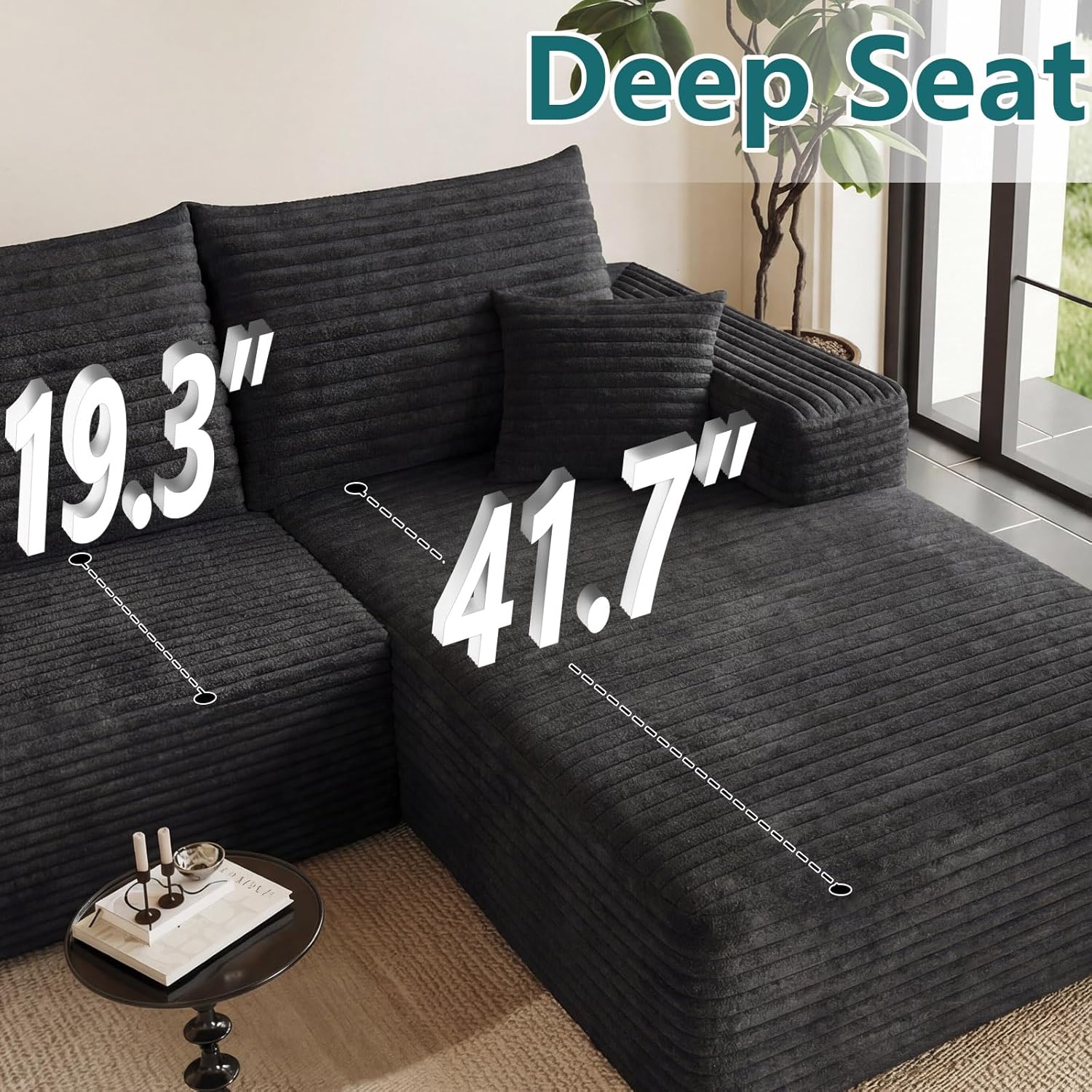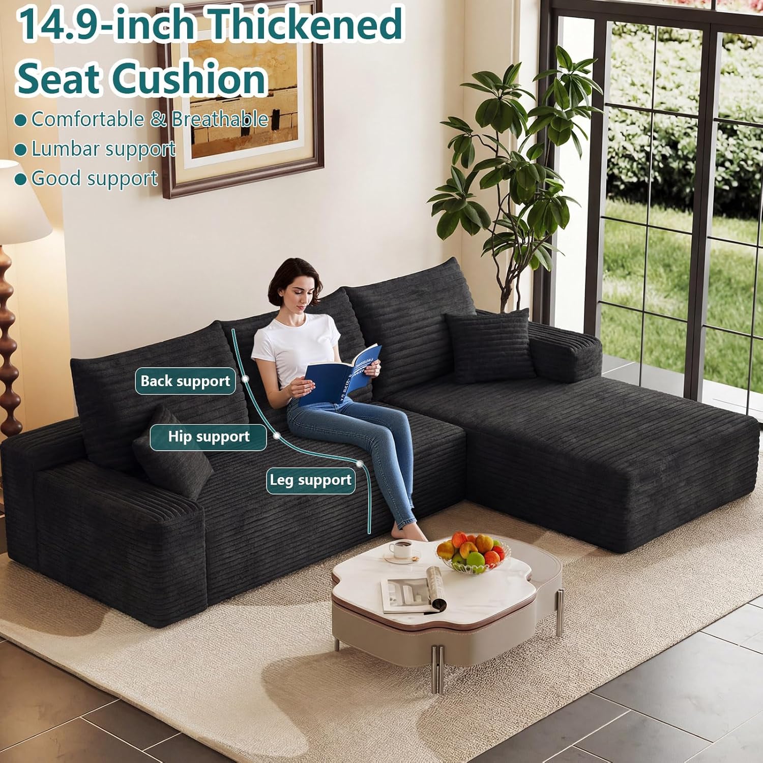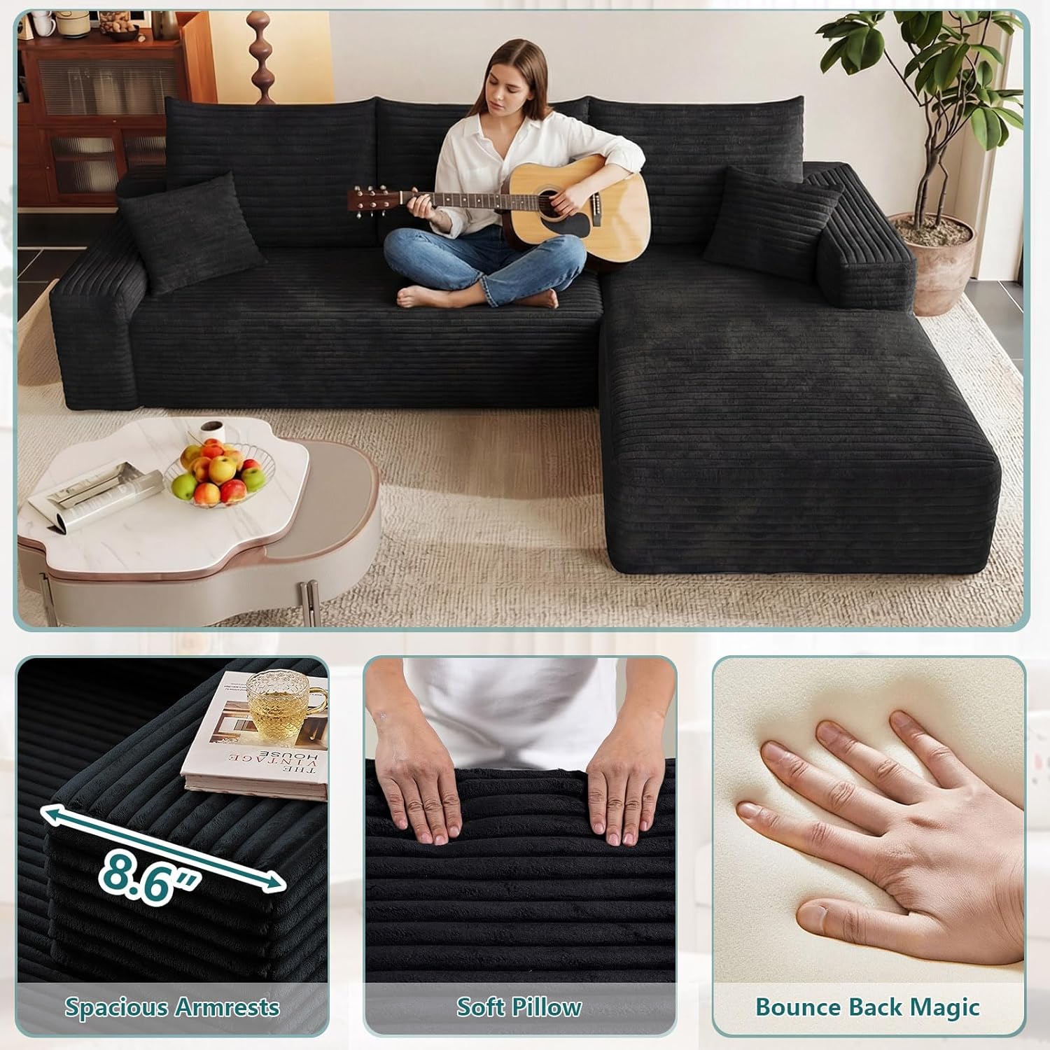 • 95" Modular Sectional Couch, Boneless L Shaped Cloud Sofa with Chaise Lounge, Corduroy Upholstered Couches Memory Foam Deep Seat, No Assembly Required, Ideal for Living Room(Black, Right Facing)