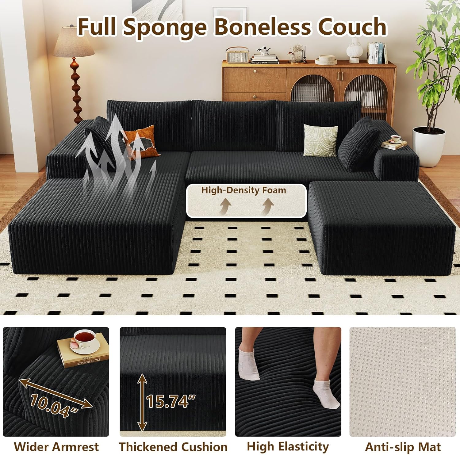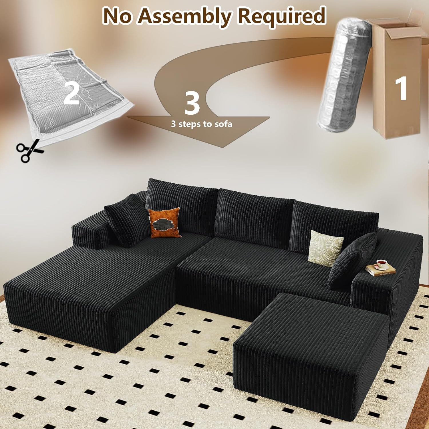 No Assembly Needed:Skip the frustrating furniture setup! Unbox all parts, lightly tap each segment to restore its springiness, and your "cloud lounge" is ready to use. It reaches full luxurious plumpness within 72 hours, saving you time and effort.