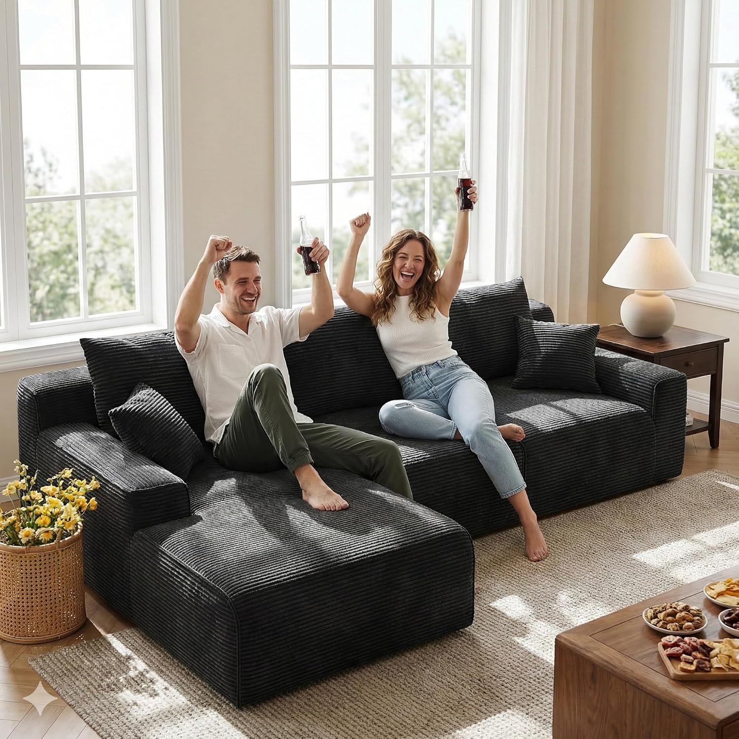 [Soft, Wrinkle-Resistant Fabric] Sectional sofas for living room is upholstered in premium soft corduroy fabric that withstands daily wear and tear and pet scratches, while its durable, high-quality material ensures lasting comfort year-round.