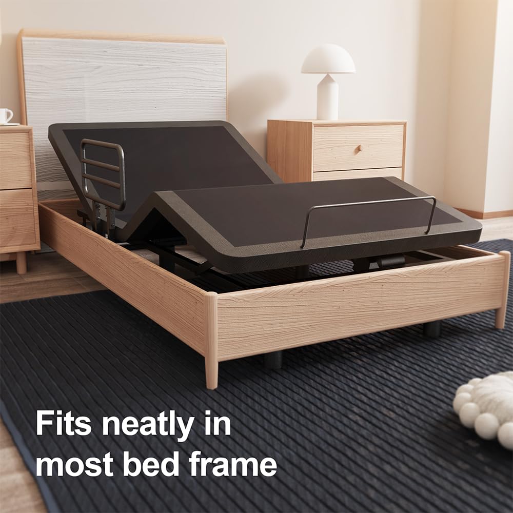 Designed with Your Safety in Mind: Our adjustable bed base is equipped with one sturdy side rail that acts as a protective barrierhelping prevent rolling or falls while you sleep, shift, or get in and out of bed. It's made from reinforced steel for long-term safety, and it fits securely with 814 inch foam and hybrid mattresses.