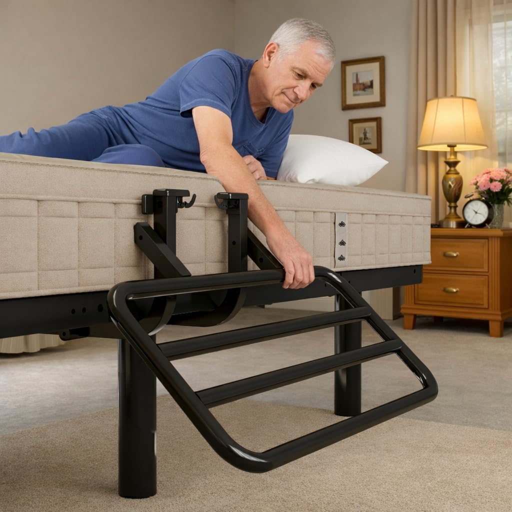Independence Made Easy: Lower or secure the side rail with just one handno help needed. Whether sitting up or easing out of bed, its balanced design helps you stay safe, steady, and independent.