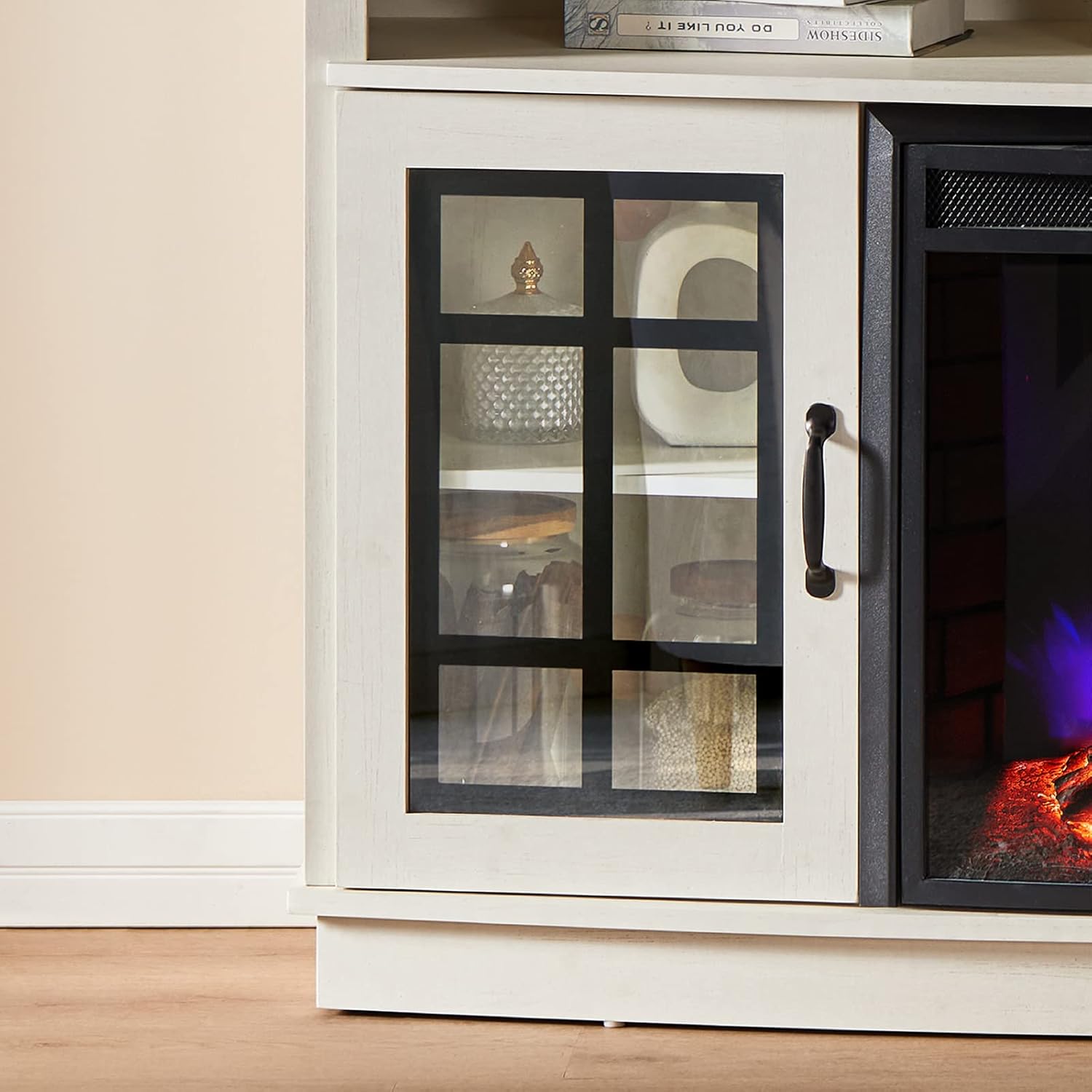[Farmhouse Rustic Style] Elegant curved lines, clear glass doors with cross patterns complement any home decor. Rich and rustic shallow and distressed white finish enhance the woodgrain offer traditional farmhouse style.