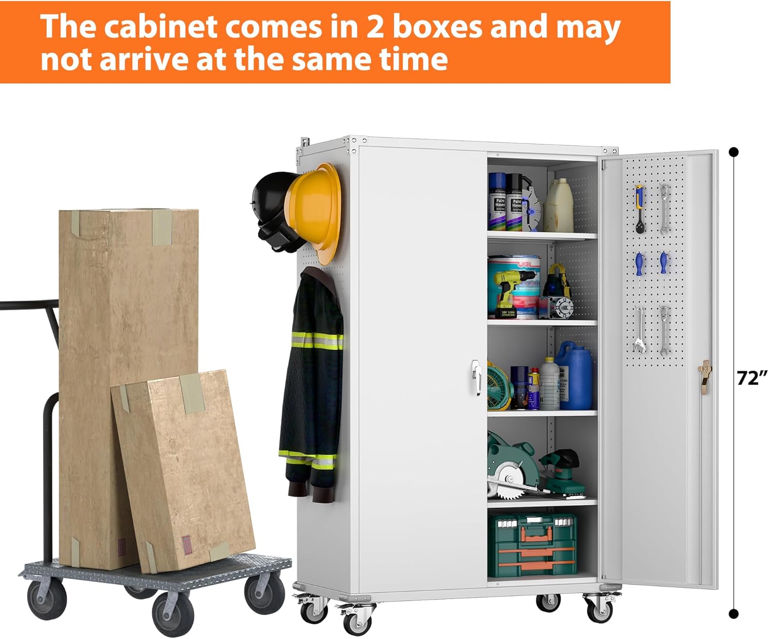 2 Packages for 1 Cabinet: Metal cabinet consists of 2 packages of different sizes, which may not be delivered at the same time. Please patiently wait for the installation after the delivery of the two packages