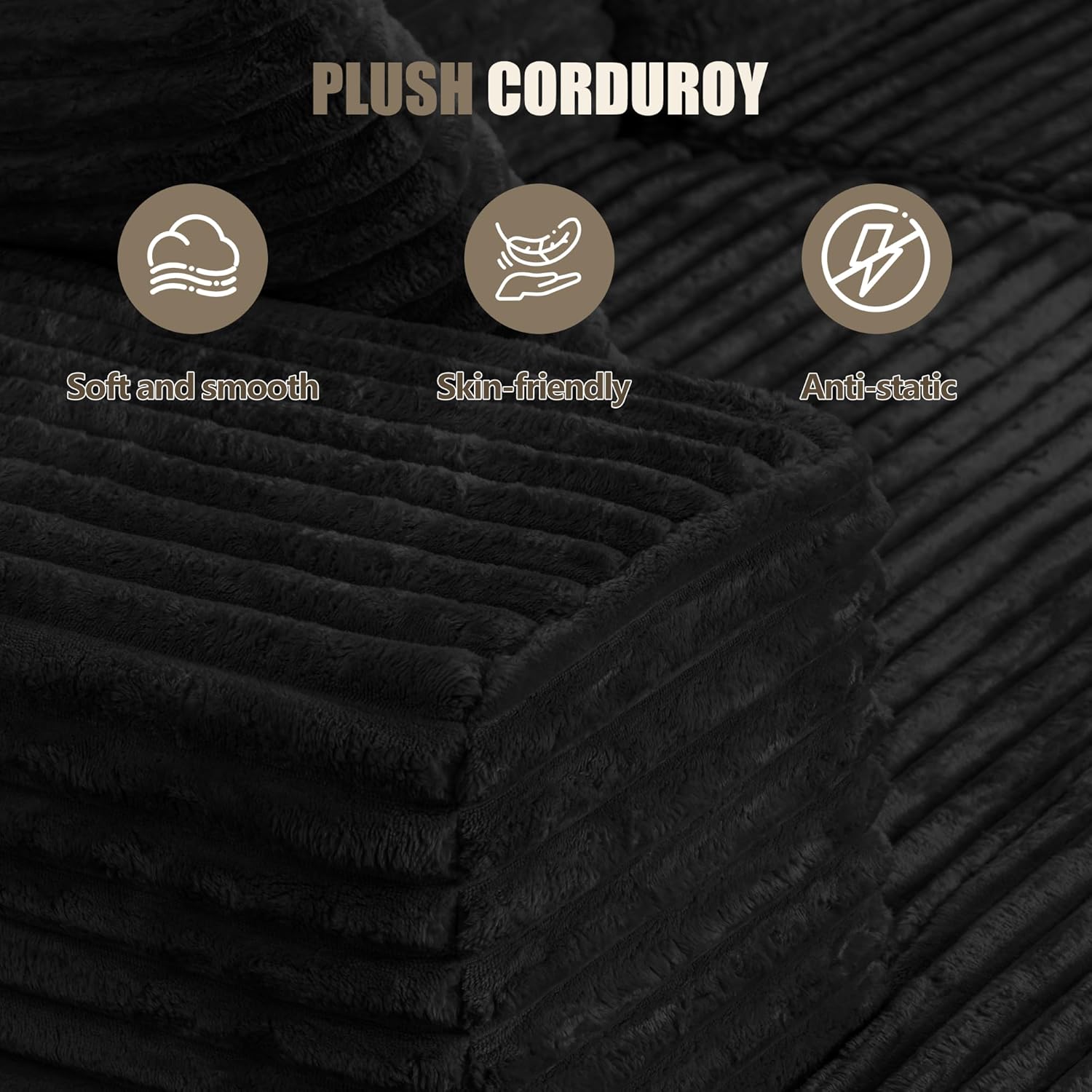 Plush Comfort & Premium MaterialsCrafted from soft corduroy fabric with a velvety touch, this sectional couch offers both luxury and durability. Filled with high-resilience memory foam, it delivers just the right support and long-lasting comfort. Non-slip feet keep the sofa securely in place for added safety and stability