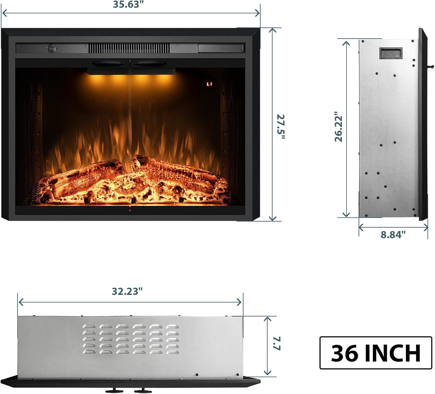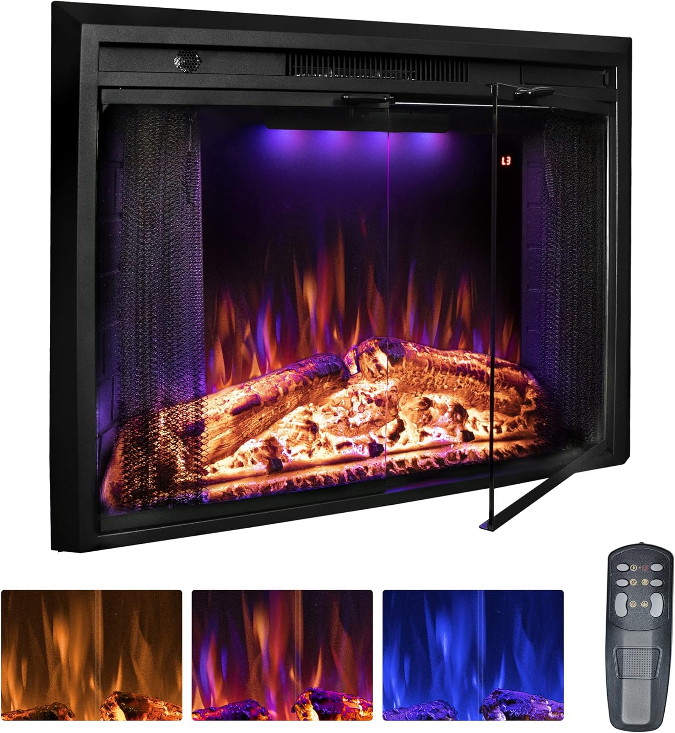 • 36 Electric Fireplace Inserts with Glass Door and Mesh Screen, Multicolor Flames & Fire Crackling Sounds, Timer, Overheating Protection Fireplace Heater, 750/1500W