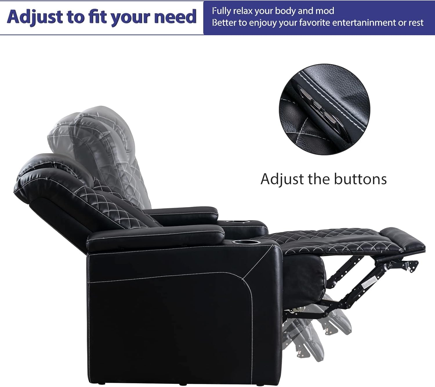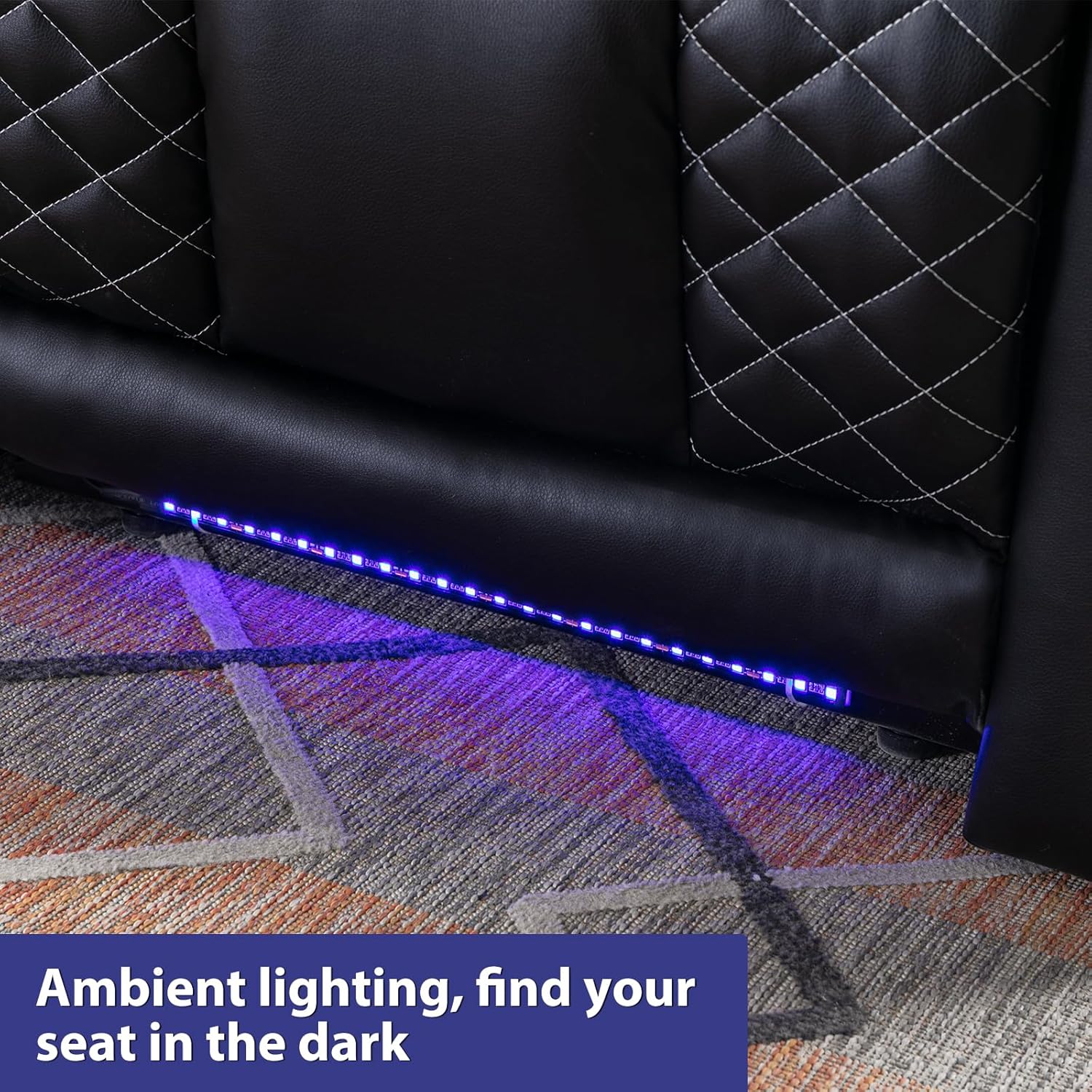 Electric Power Recliner Chairs with USB Ports and Cup Holders, Breathable Faux Leather Home Theater Seating Recliner with Hidden Arm Storage, Ambient Lighting, Black