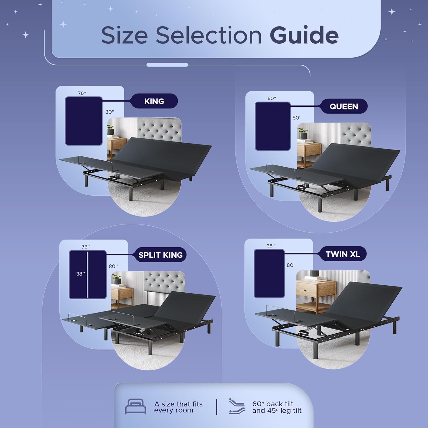 Indulge in Economical Comfort: Adjust your legs up to 45 degrees and your back up to 60 degrees, without breaking the bank. Benefit from improved airways, reduced congestion, minimized snoring, and proper spine alignment for ultimate comfort. Our mattress is made with gel infused memory foam that conforms to every curve and helps you sleep cool. Get support where you need it and comfort where you want it.