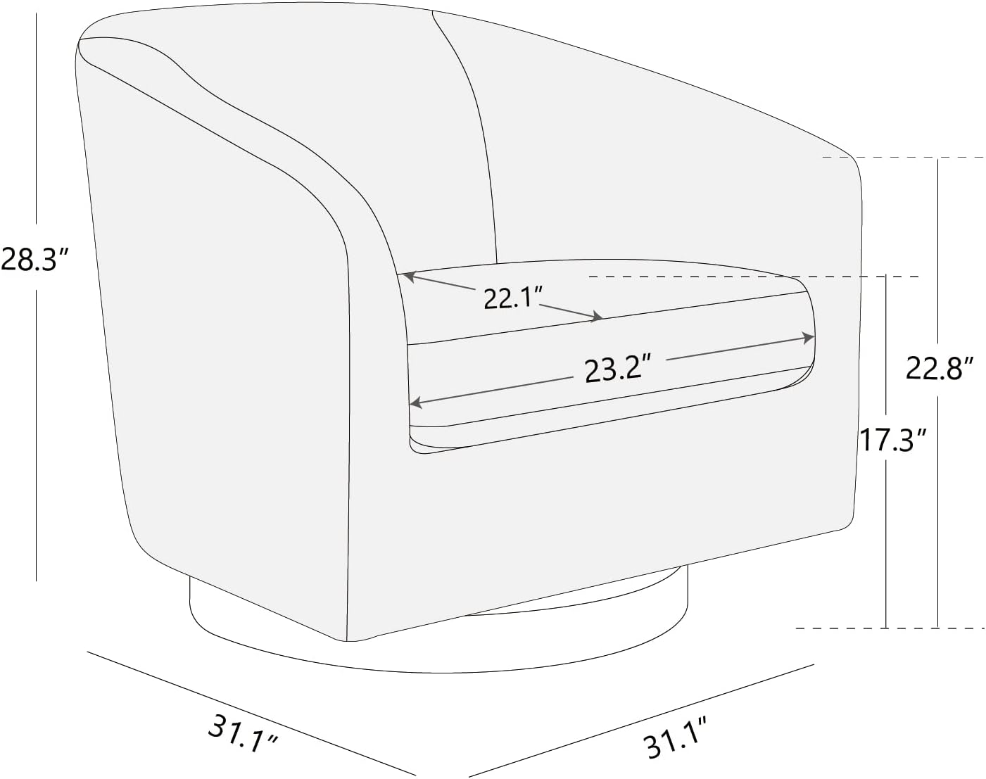 Dimension - Overall Product Dimension: 31.1''D x 31.1''W x 28.3''H. Seat Dimension: 22.1''D x 23.2''W x 17.3''H. Weight capacity: 350 lbs.