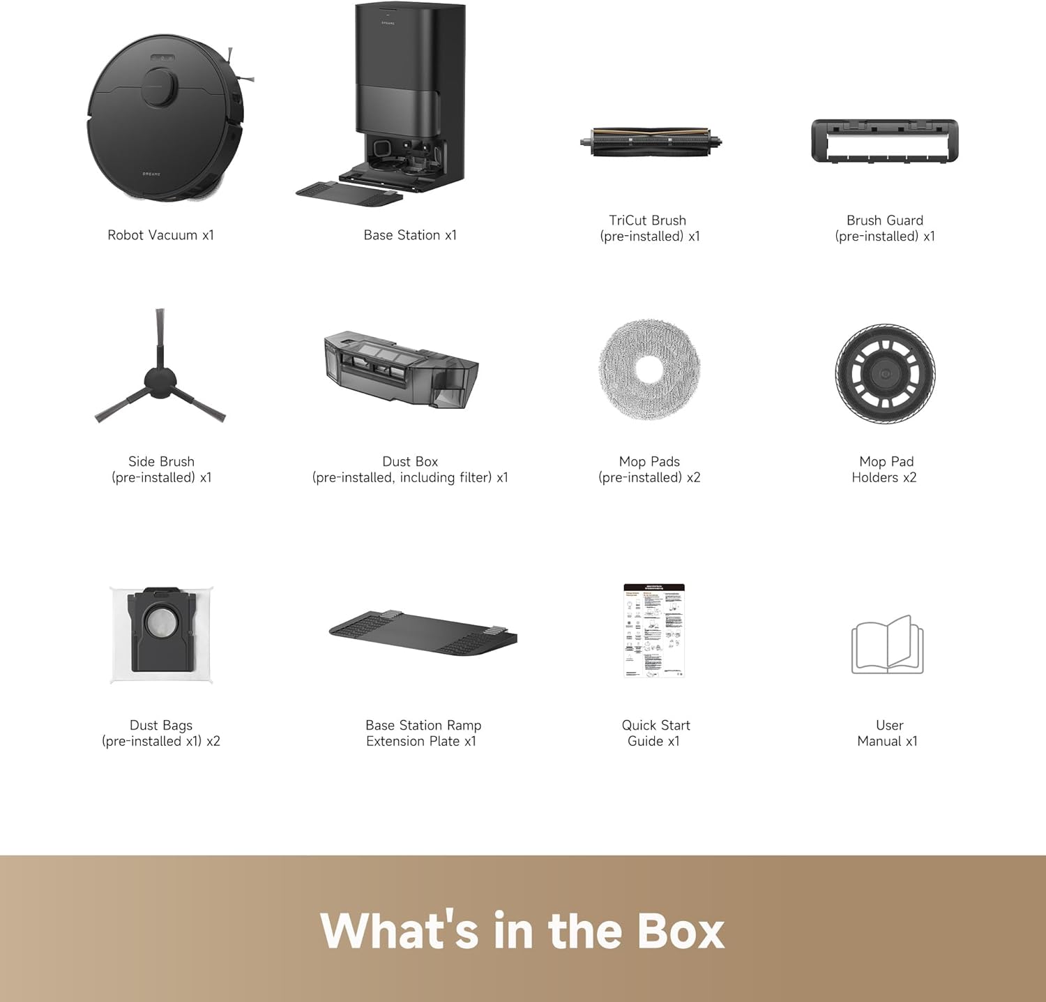 • D30 Ultra Robot Vacuum and Mop, 25,000Pa Powerful Suction, All-in-One Base Station with 100 Days Auto-Empty, MopExtend Tech for Edge Cleaning, Smart Obstacle Avoidance, Black