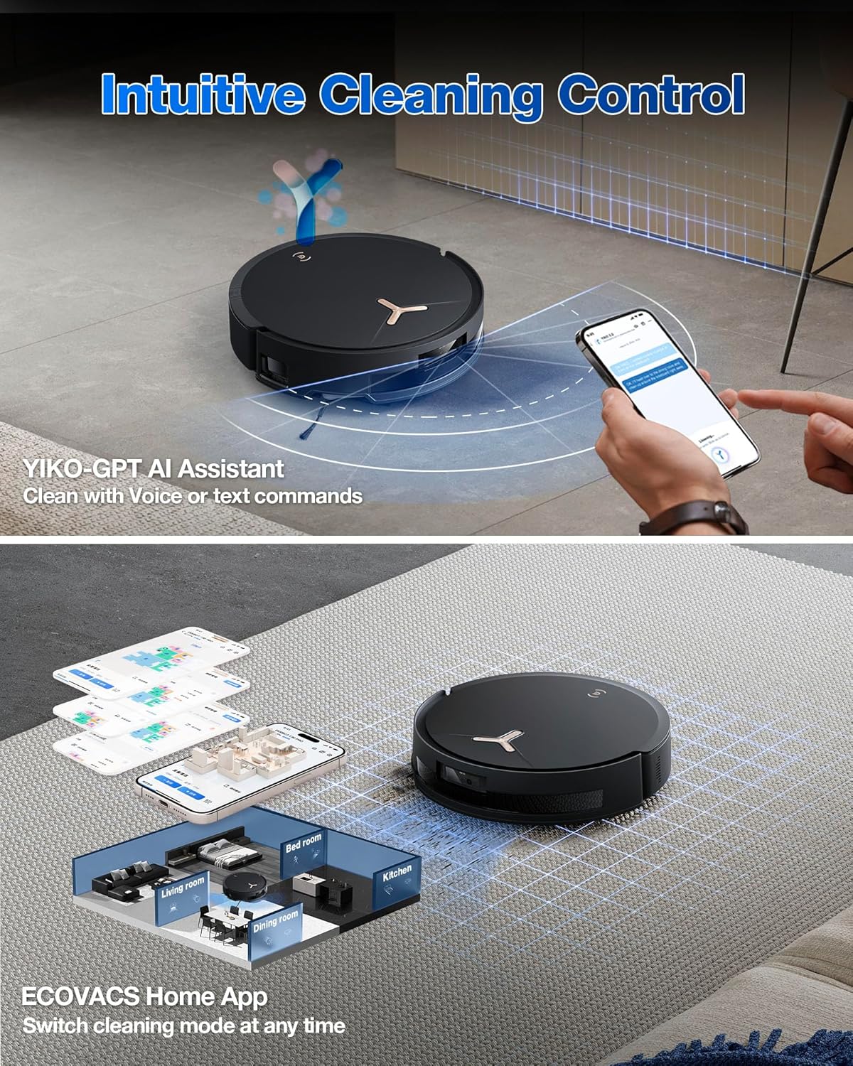 Smart Home + YIKO-GPT Effortless Voice Control: Too busy to open an app? Control your DEEBOT via Alexa, Google, or Matter smart home systems. With YIKO-GPT AI, just say the wordT50 MAX PRO understands voice or text commands for a fully hands-free, intelligent cleaning experience.