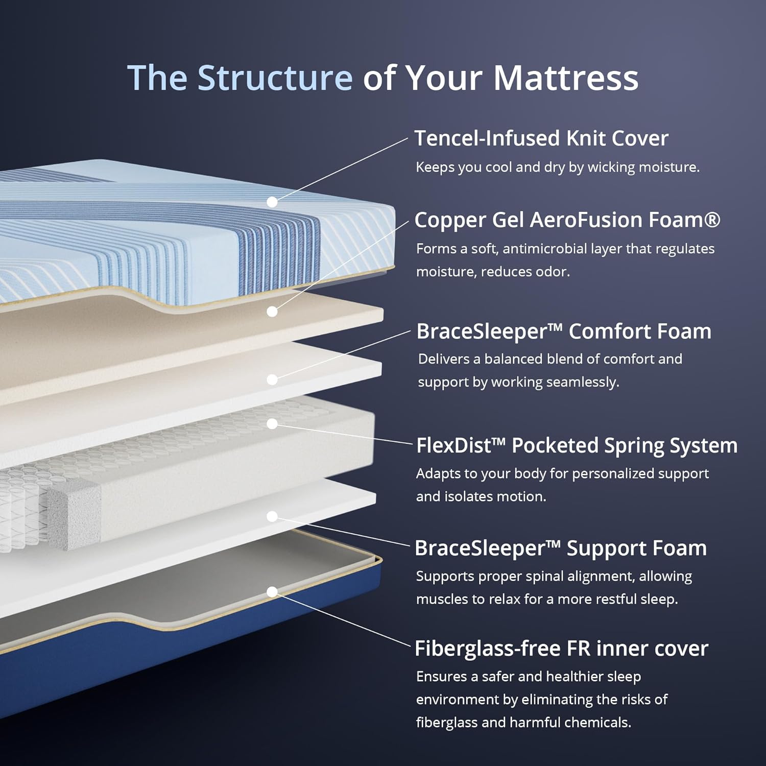 Cooler Sleep, Night After Night: Upgraded knit Tencel cover is silky-soft yet resistant to wear and wrinkles, so it stays pristine and plush for years. Tencel fabric and Copper Gel Memory Foam work together to draw heat away and wick moistureperfect for hot sleepers.