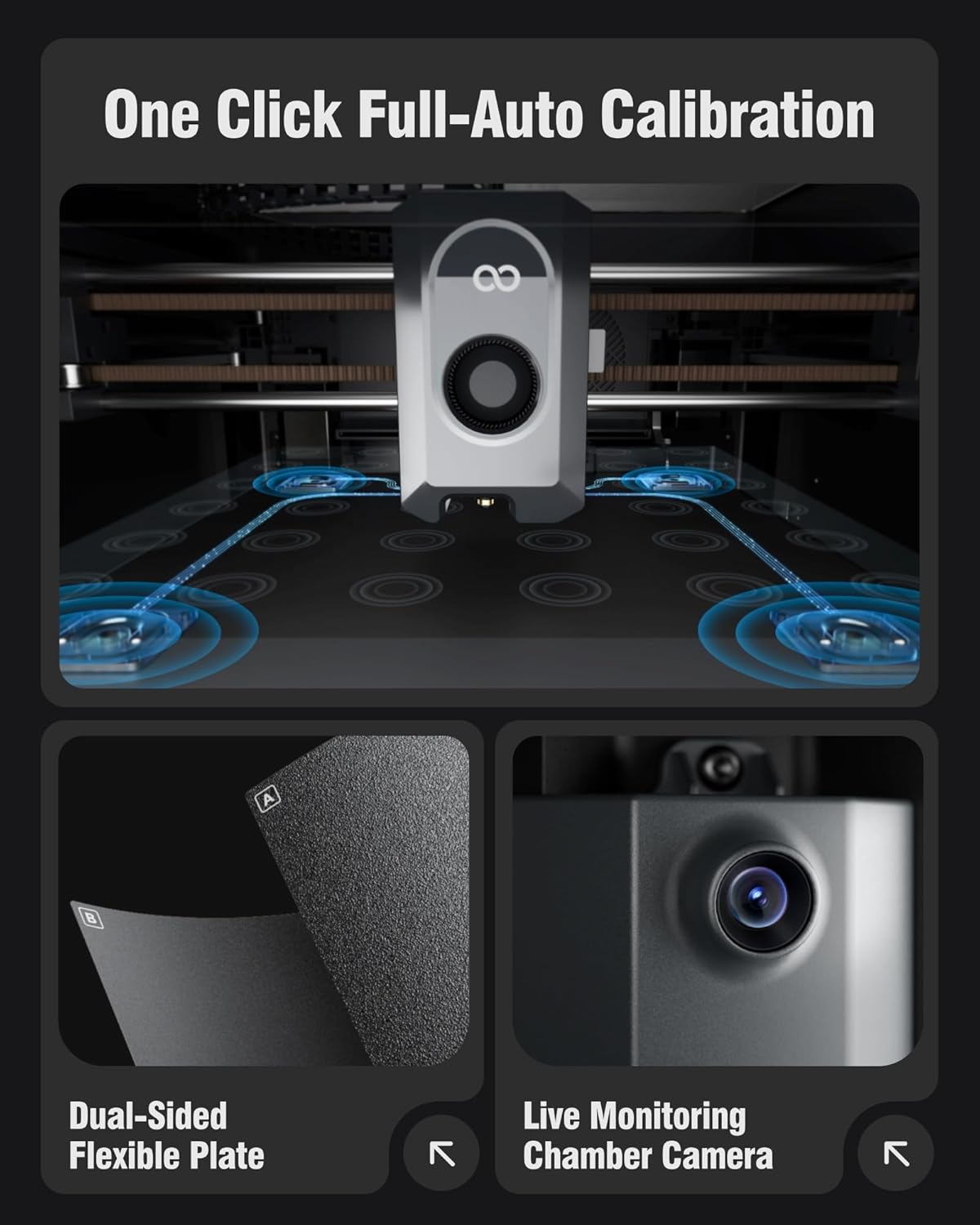Smart Monitoring & Flawless Printing: Monitor your prints in real time with the built-in chamber camera and dual LED lighting. Capture time-lapse videos and make remote adjustments with ease. The upgraded dual-sided plate features a new PLA Specific Surface with excellent adhesion and minimal warping ensuring perfect PLA printing even at lower heatbed temperatures