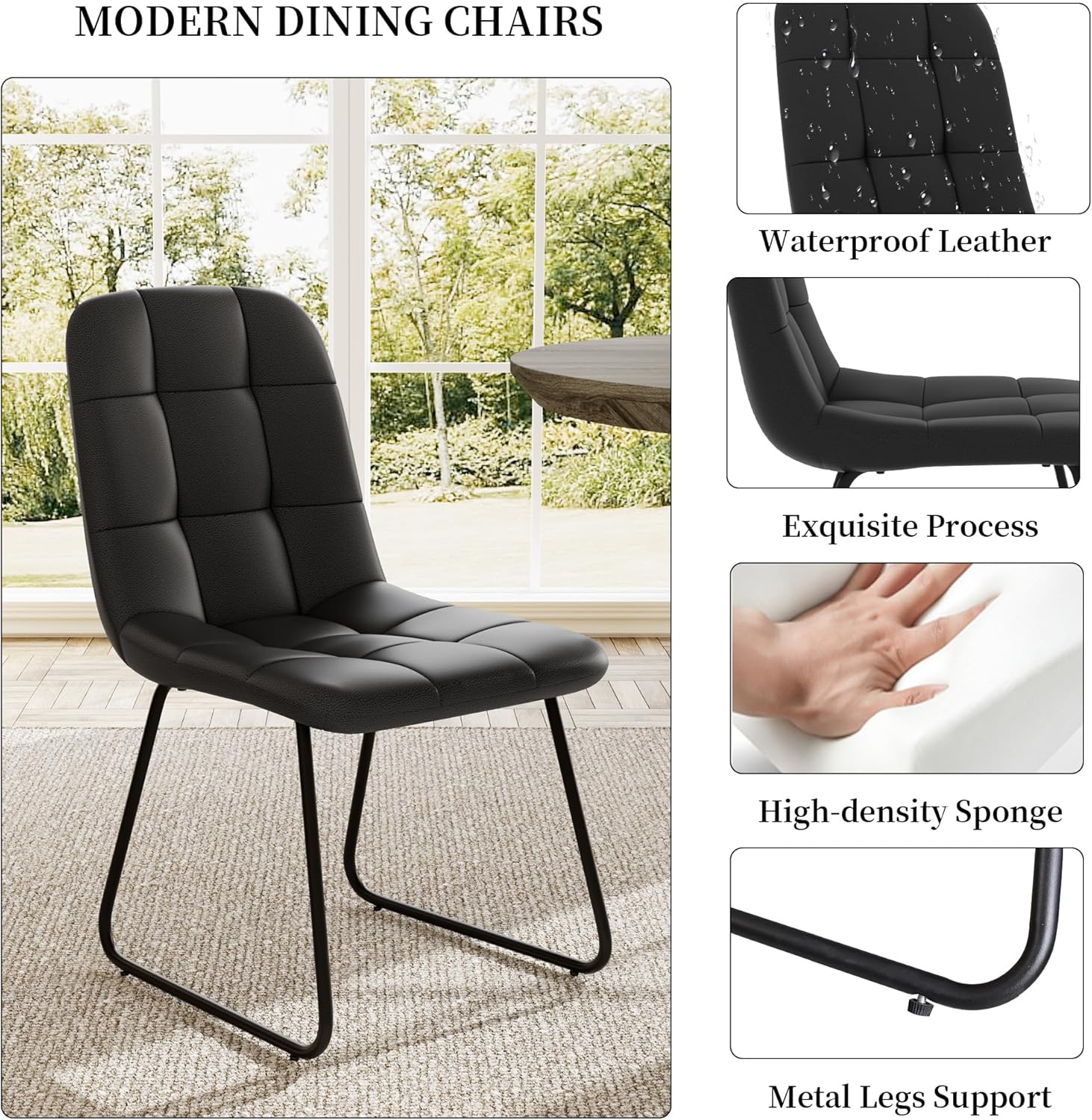 Ergonomic Dining Chairs: The modern kitchen chairs feature high-quality PU leather upholstery, ergonomic curved backs, and high elastic sponge for comfort and durability. And its incredibly easy to cleanjust wipe with a damp cloth to keep it.