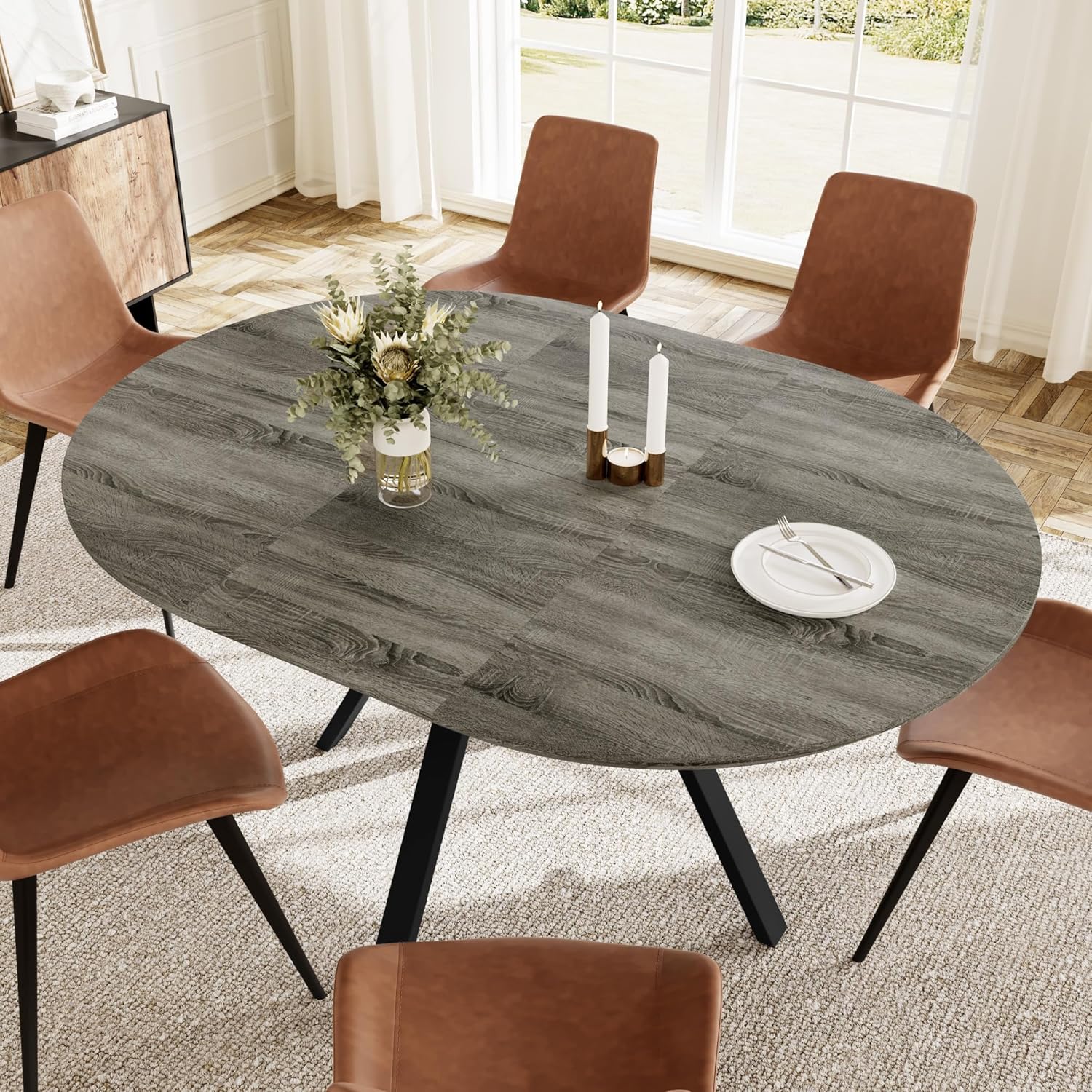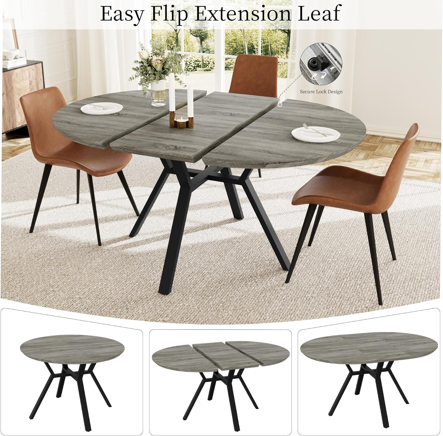 Durable and Sturdy: Crafted from high-quality MDF with a tabletop thickness of 1.57 inches, the round dining room table is water-resistant and waterproof. Supported by strong metal legs, it can hold up to 130 lb. Adjustable leg pads keep the table level on uneven floors, preventing floor scratches.