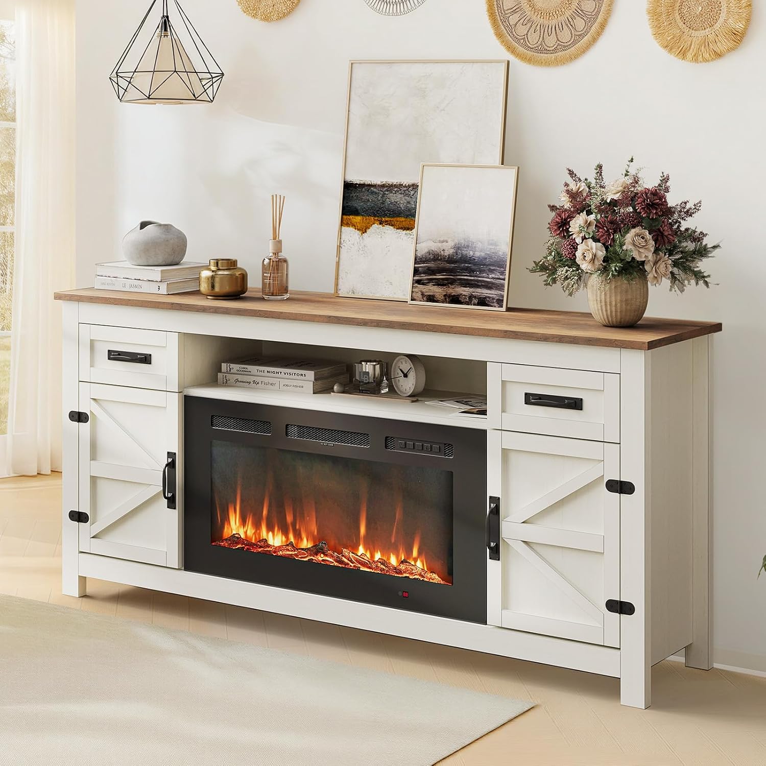 Farmhouse Style: Timeless barn door style with black metal accents adds classic charm to any living space