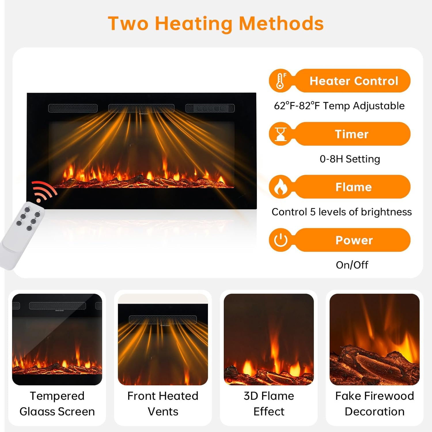 Smart Climate Control: Remote-controlled temperature adjustment (62F-82F) with programmable timer (0-8 hours) for personalized comfort