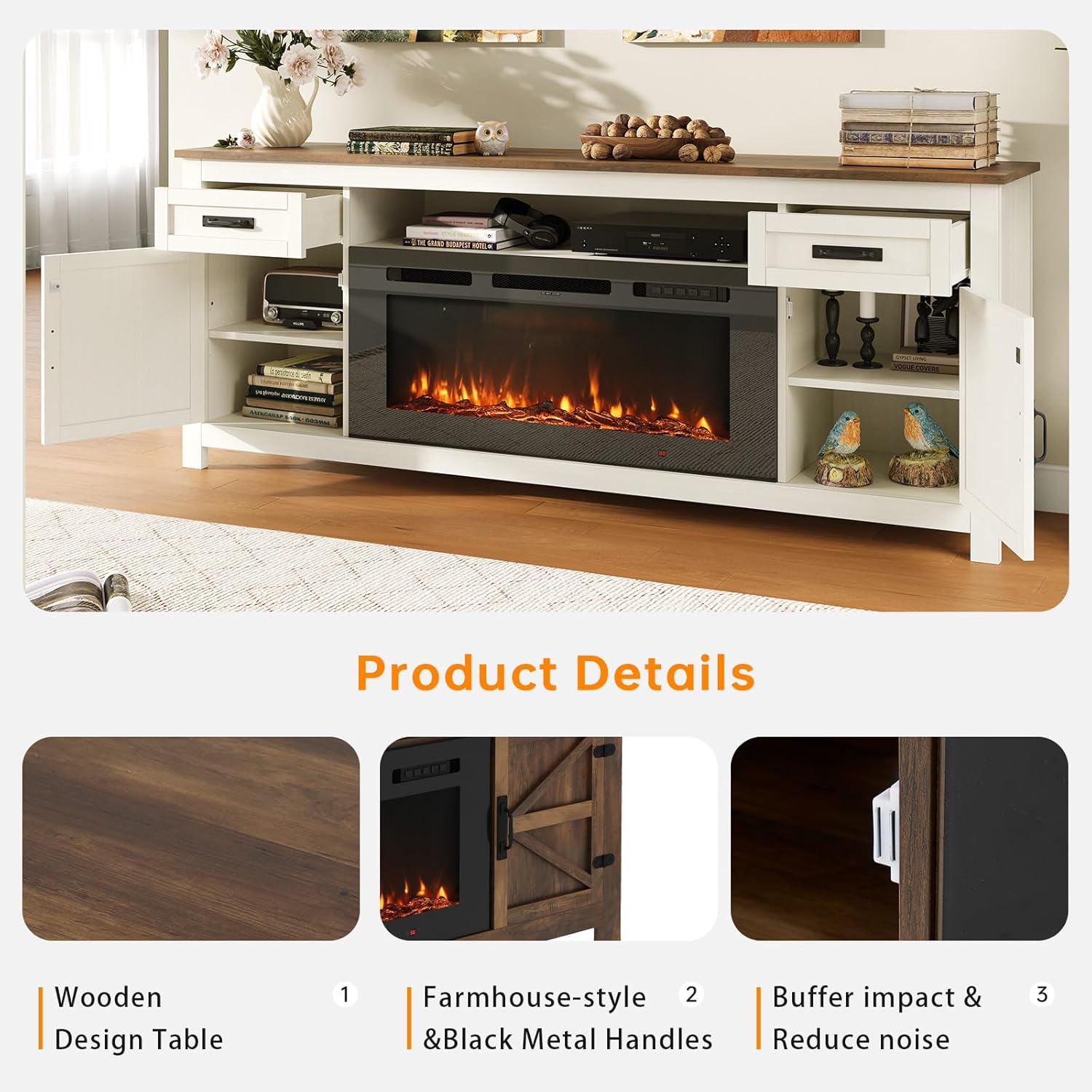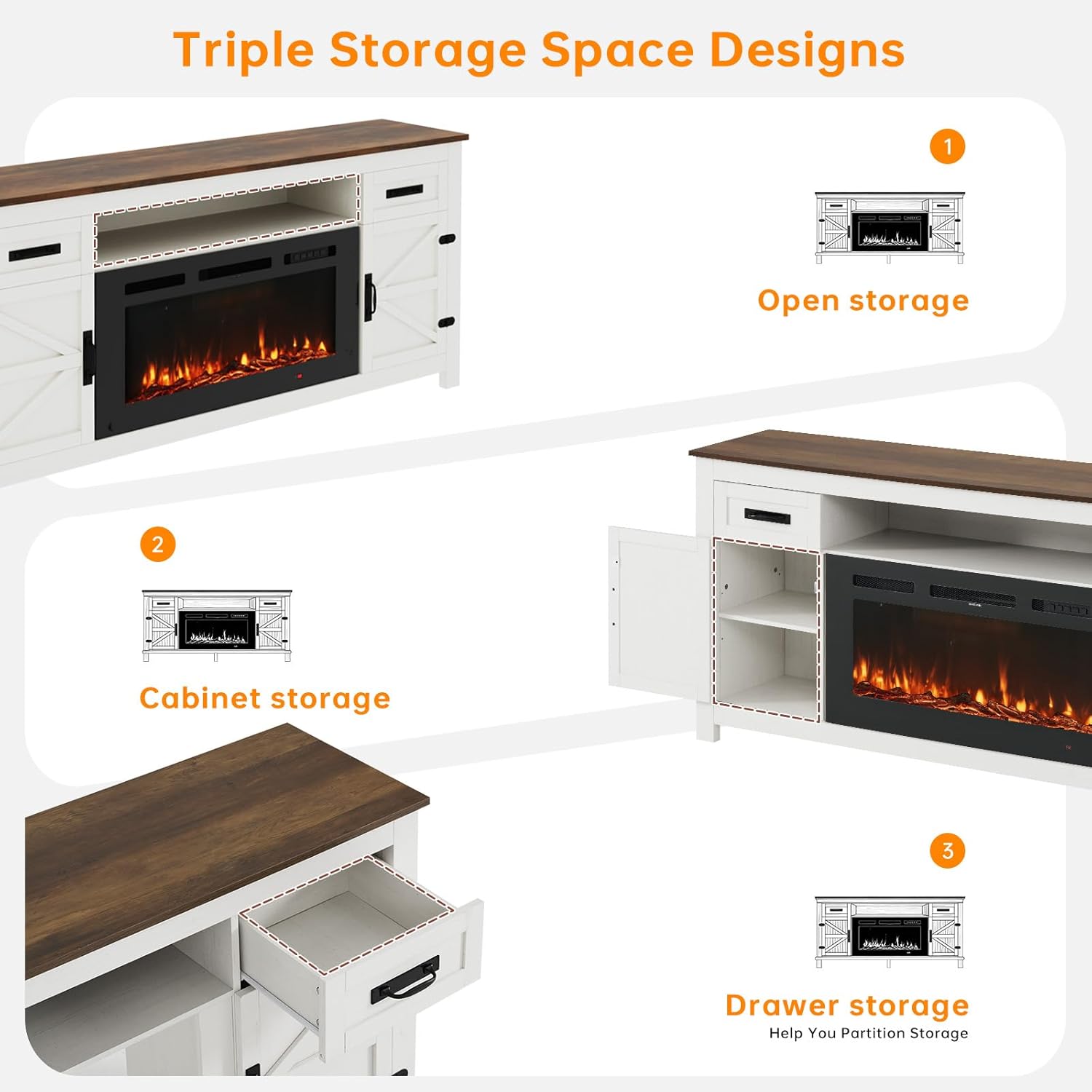 Versatile Storage System: Two spacious drawers combined with open and closed cabinets accommodate media devices and accessories