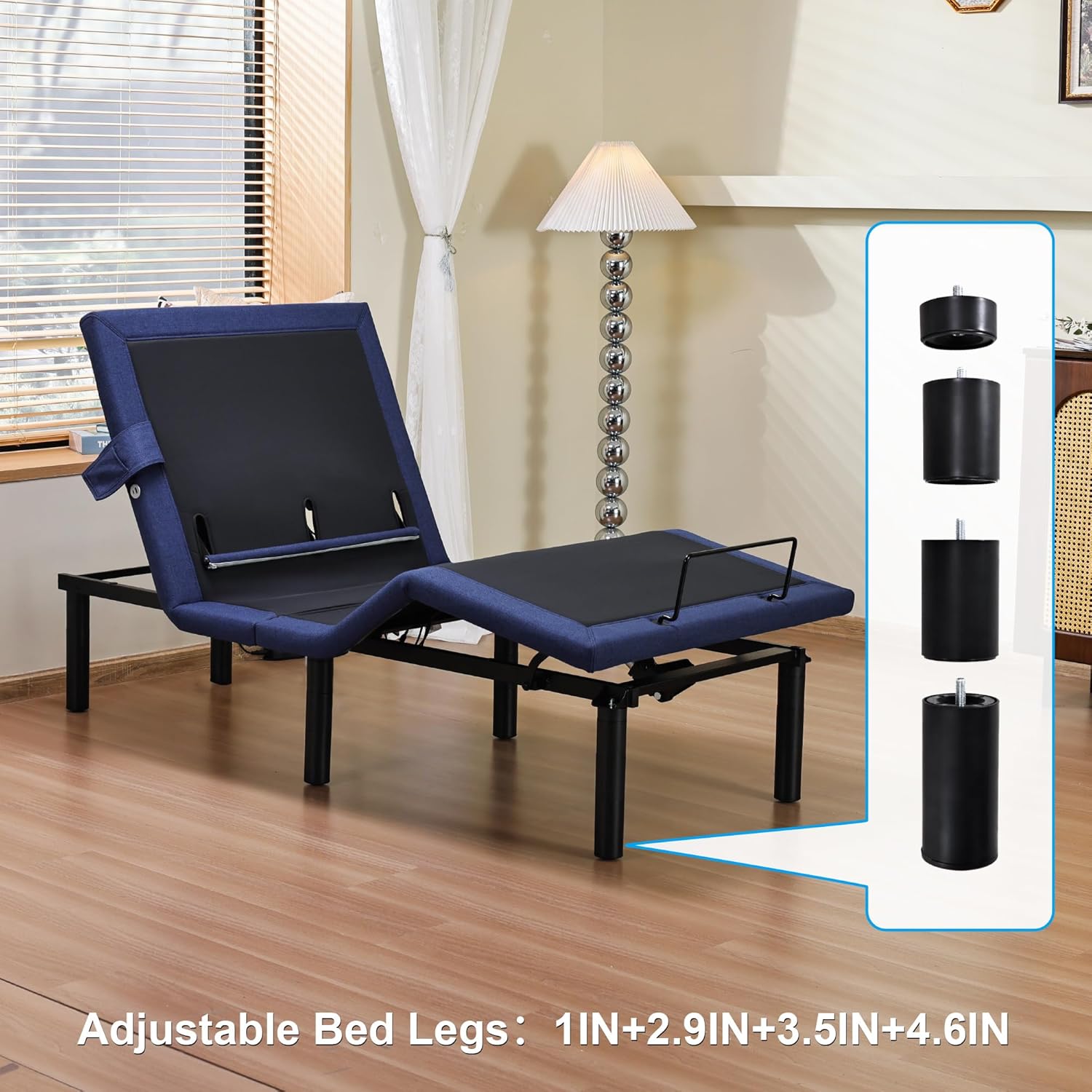 ERGONOMIC SUPPORT & PRESSURE RELIEF: This eletric bed base is achieved optimal positioning with 68 head elevation and 38 leg elevation combined with 38 pillow tilt. Features an adjustable lumbar support system that provides dynamic spinal alignment