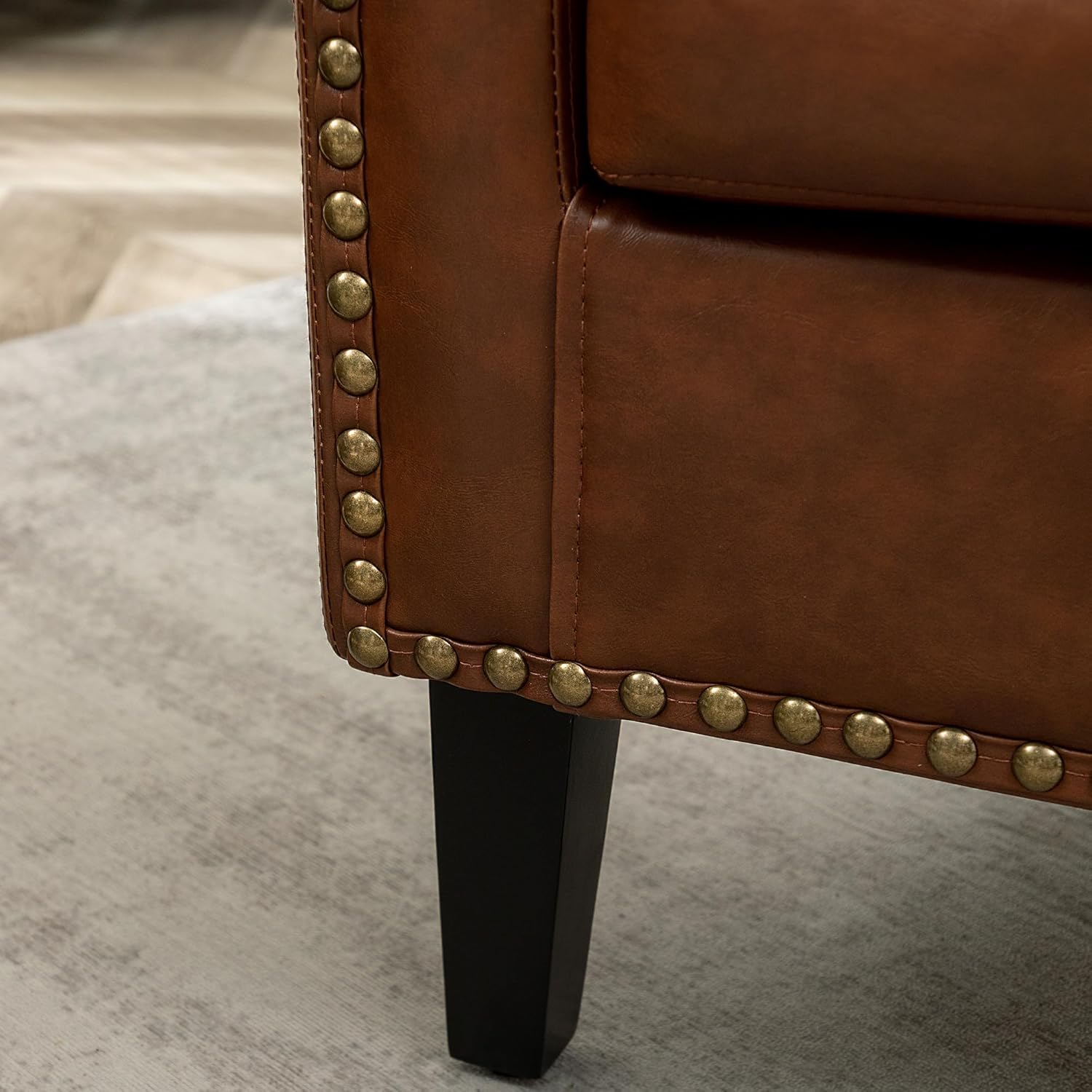 ELEGANT DESIGN - The 29-inch arm accent chair is wrapped in faux leather upholstery in a neutral hue to match most styles and color schemes. It has a removable seat cushion for greater flexibility. Diamond tufting in the back, round arms, and nailhead trim down the front complete this traditional design.