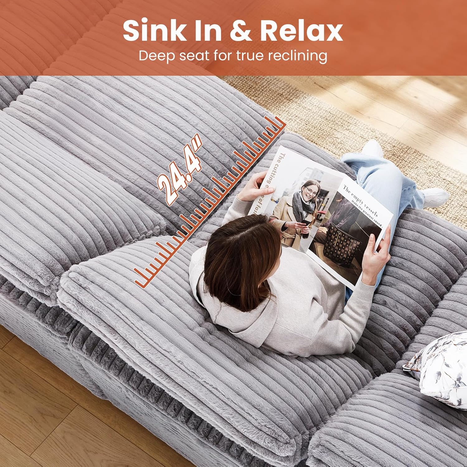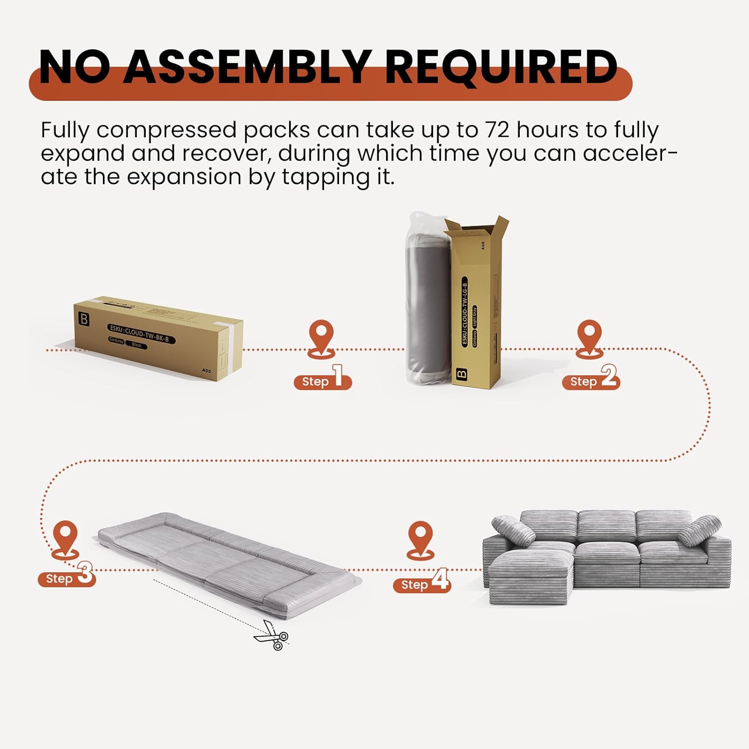 No Assembly Needed: Oversized couch no tools or screws required. Just unpack, gently pat each piece, and allow 72 hours for the sofa to fully expand and regain its shape. Enjoy immediate comfort with minimal effort
