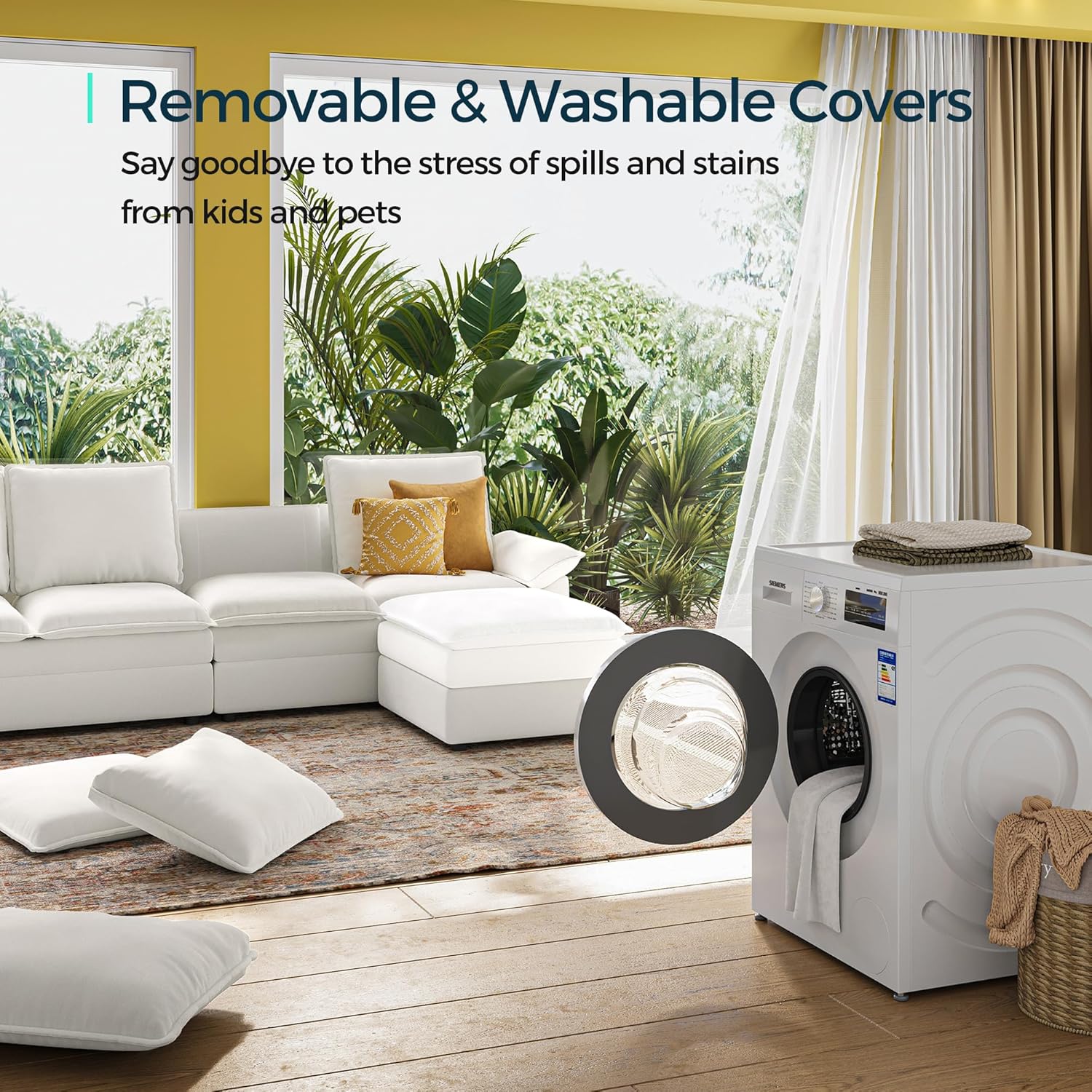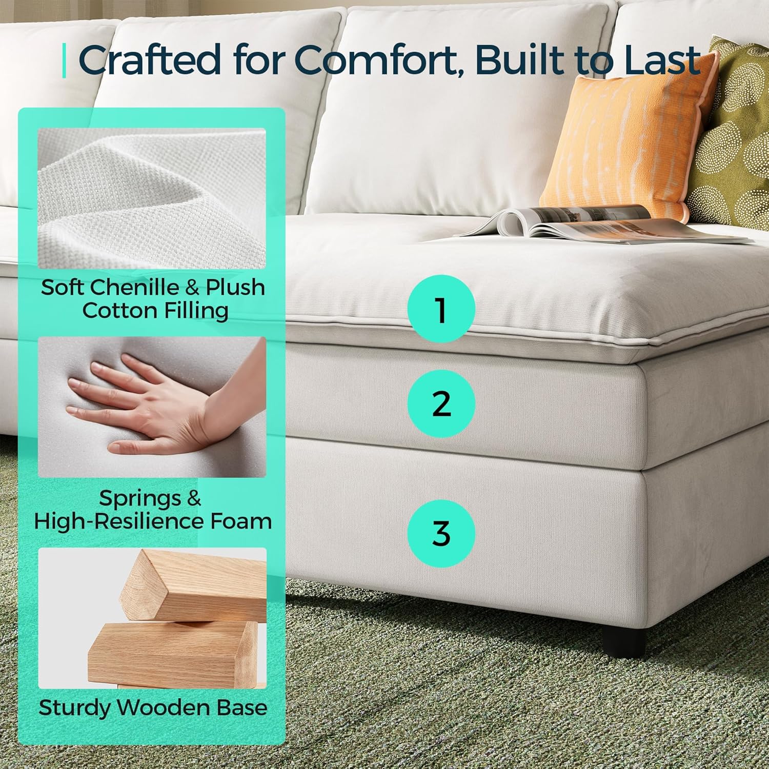 Built for Comfort & Durability: Crafted with eco-conscious, premium materials for lasting comfort and durability, this sectional sofa features a robust solid wood frame enveloped in soft, breathable polyester chenille, ensuring it feels luxurious while standing up to years of use.
