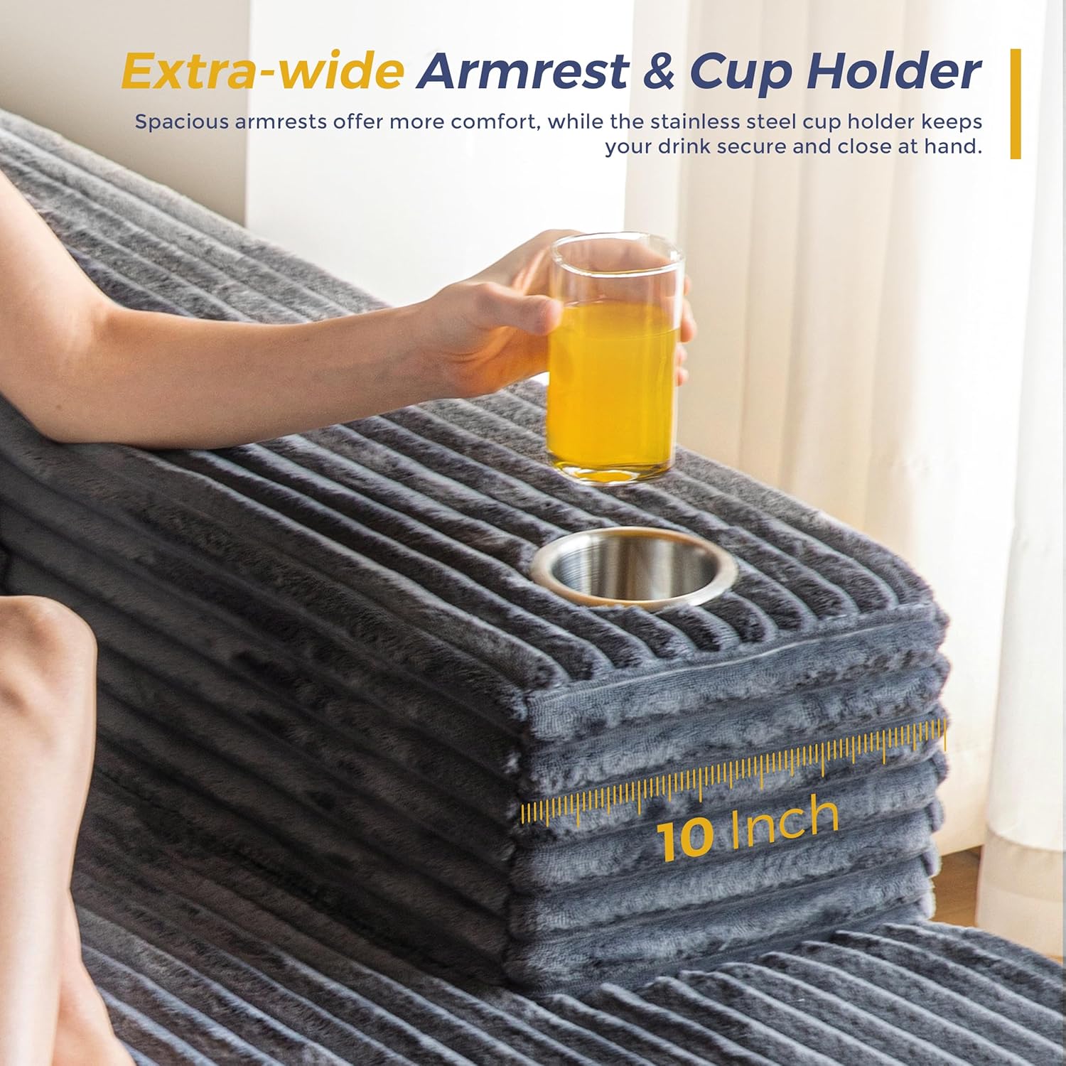 Handy Cup Holder & Side Pockets: The embedded cup holder design at the armrest makes it easy to hold a drink at your fingertips, so you don't need to leave your seat when watching a film or reading a book. Side invisible storage pockets cleverly integrate practical functions, can store magazines, remote control, eye masks, etc., always keep the space neat and orderly