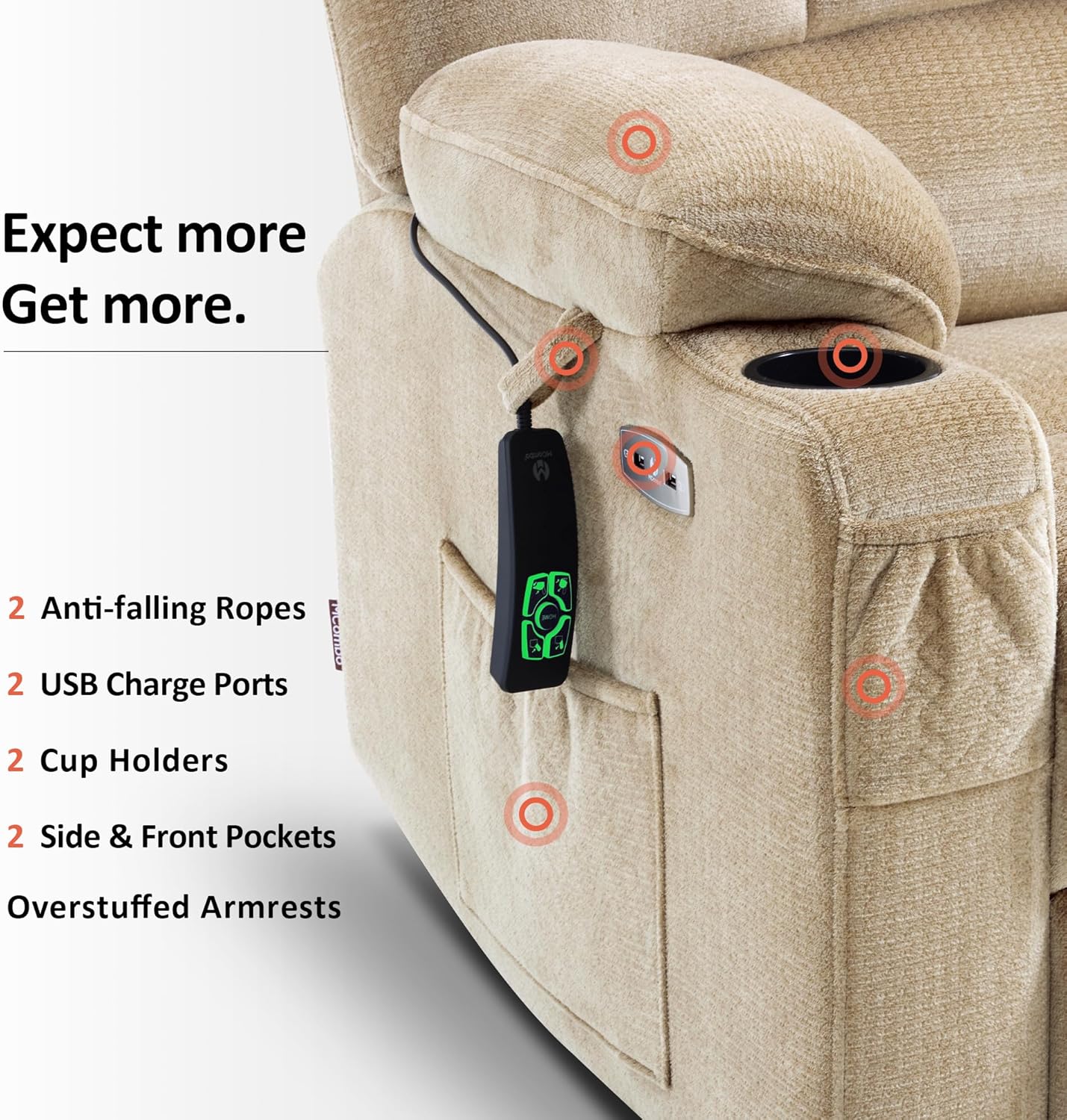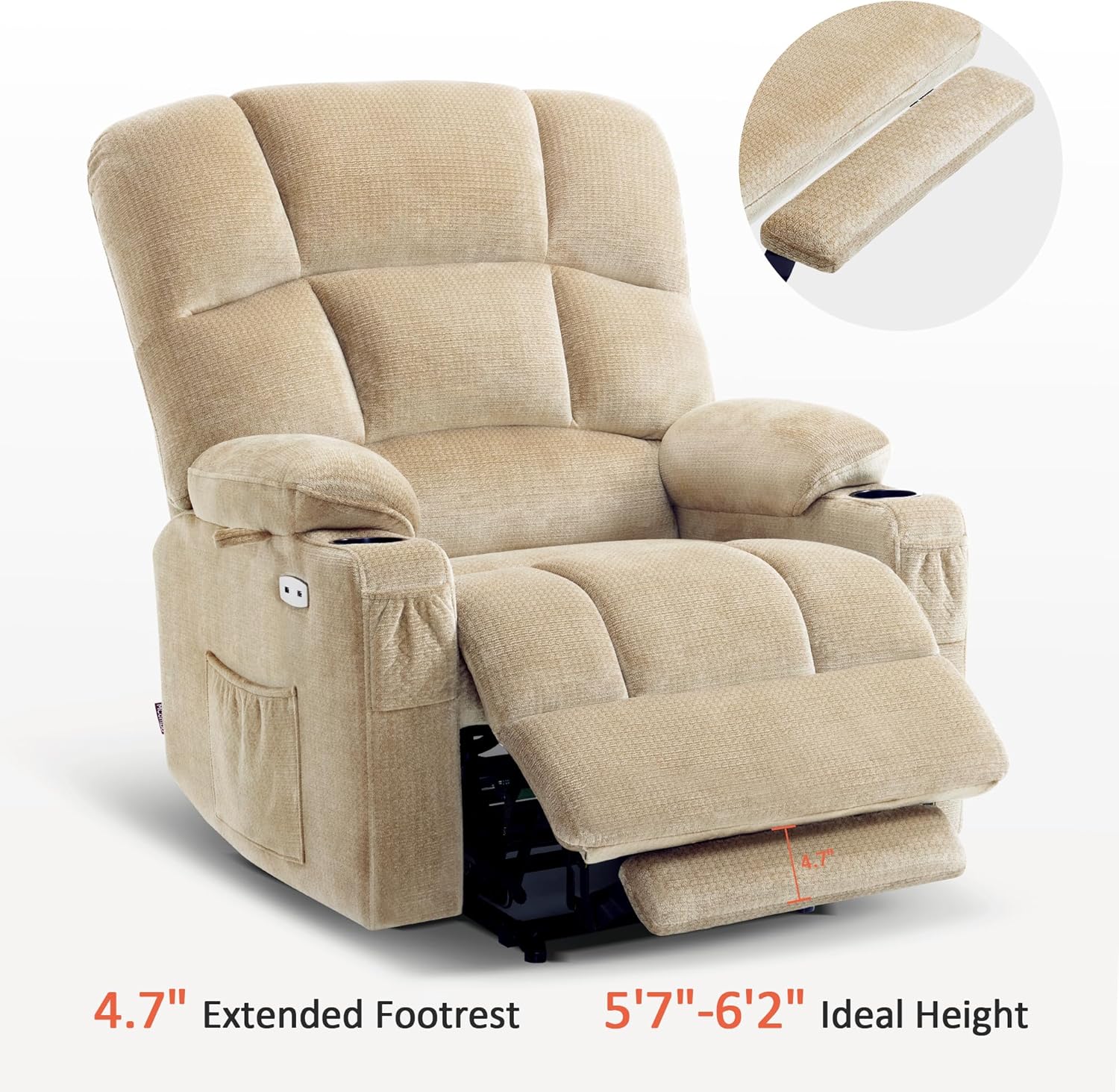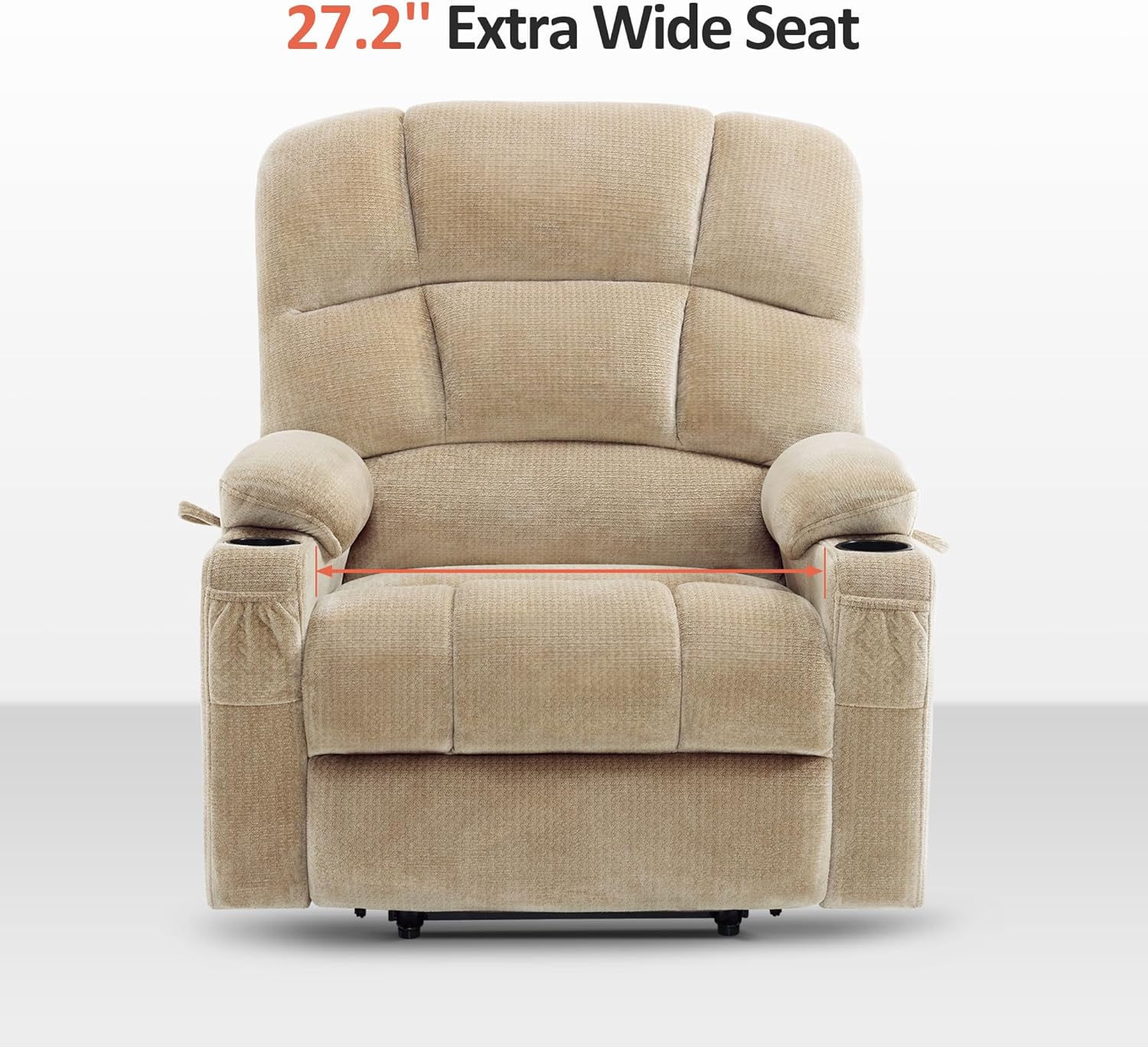 • Oversized Dual Motor Power Lift Recliner Chair Sofa with Massage and Heat for Big Elderly People, Infinite Position, USB Ports, Fabric R7688 (Beige, Large-Oversize)