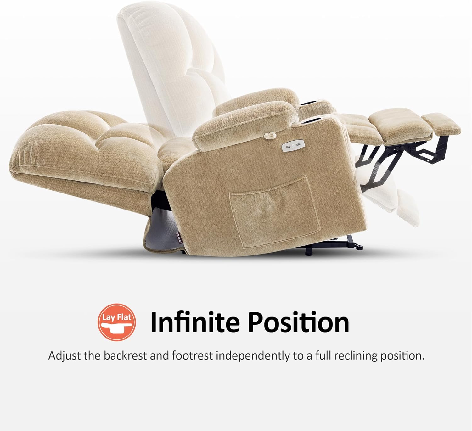 DUAL MOTOR: With the help of built-in dual motor, the chair's backrest and footrest work independently, it means you can adjust to the infinite position you want, lift, TV, and lay flat (Max reclining angle: 165)